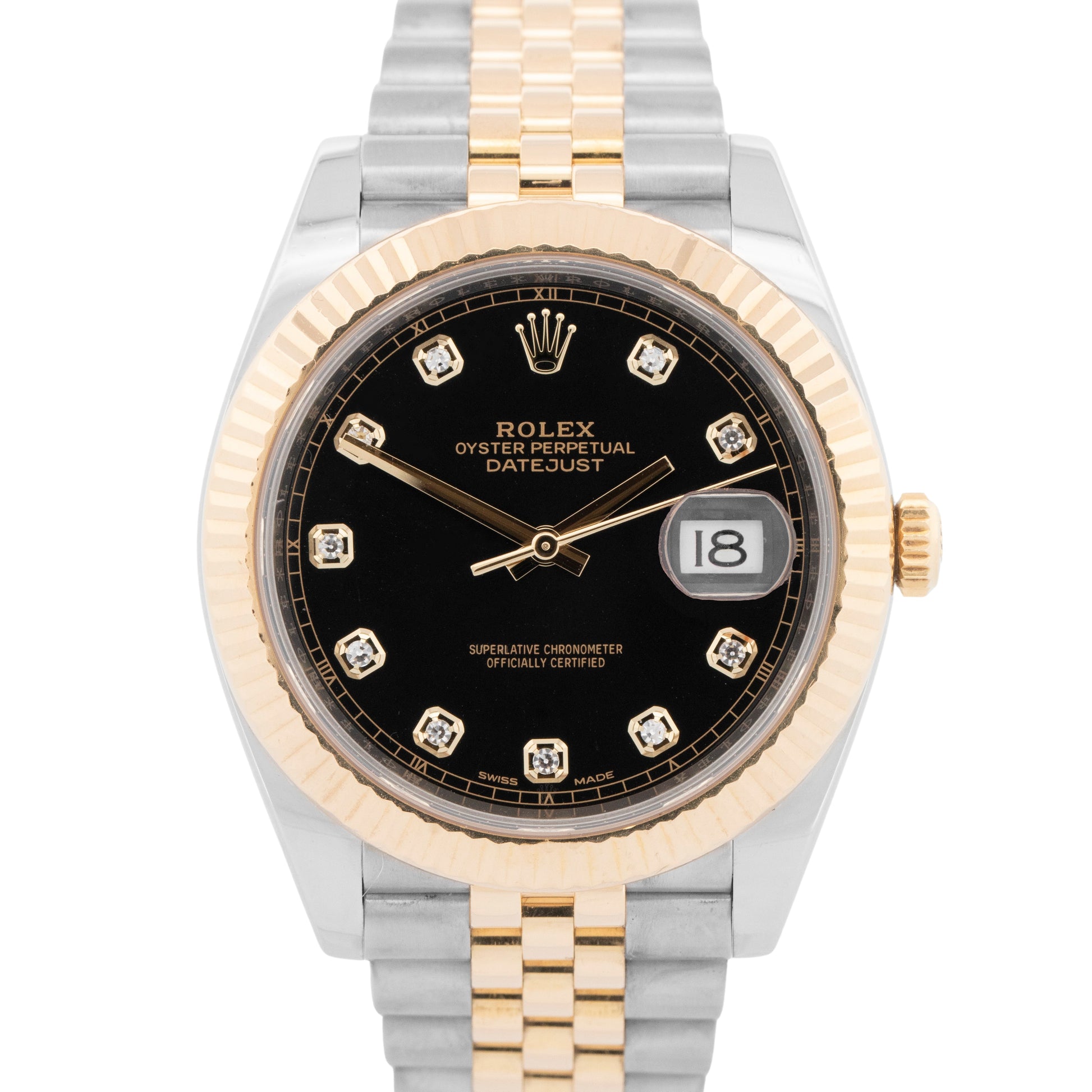 Rolex DateJust 41 DIAMOND Black Two-Tone 18K Yellow Gold Watch 41mm 126333