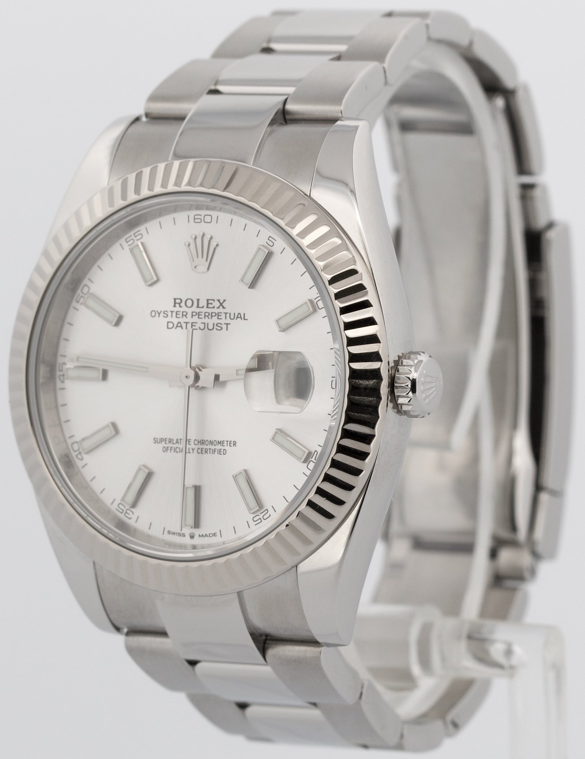 Rolex DateJust 41mm SILVER 18K White Gold Stainless Steel OYSTER Watch 126334