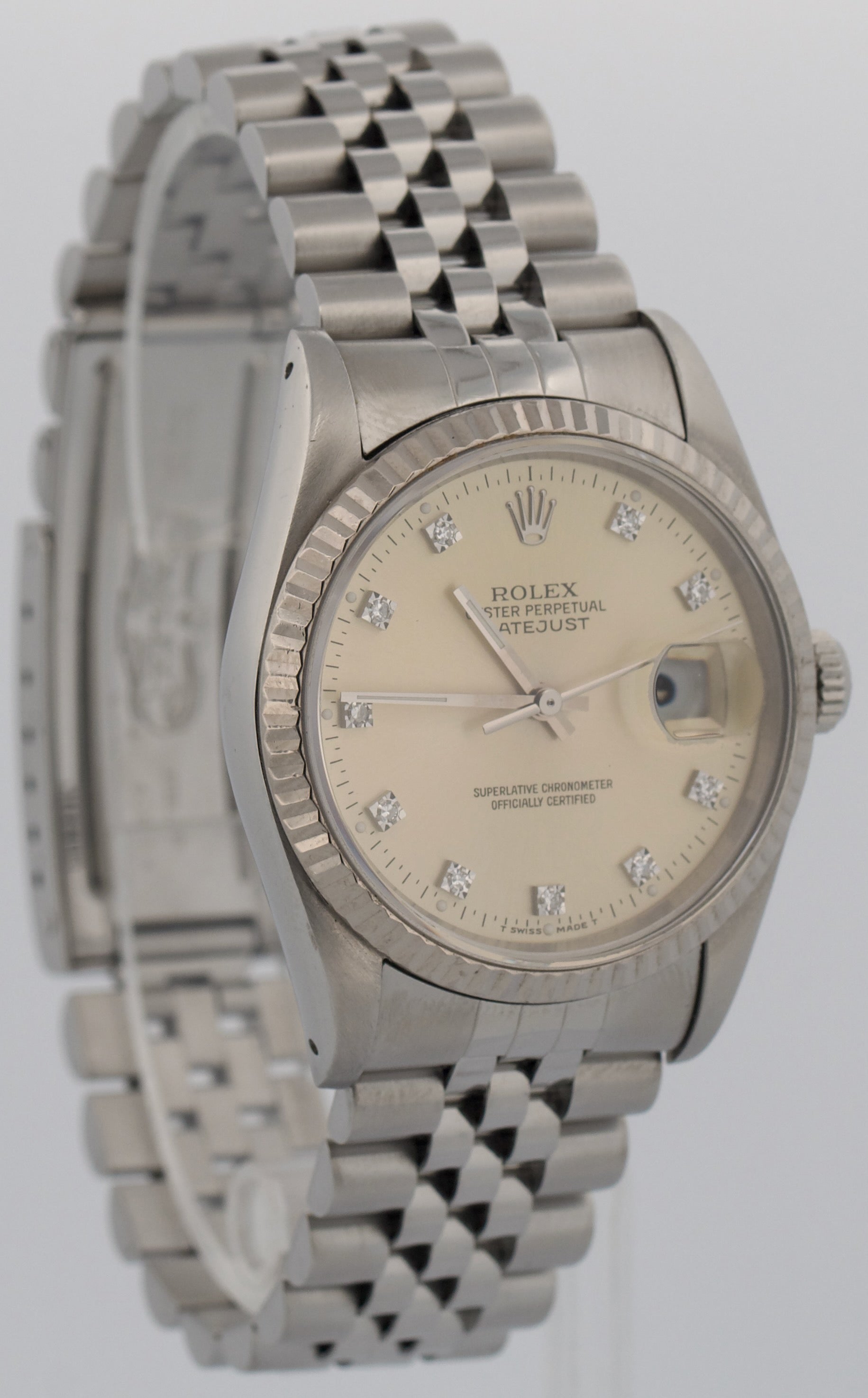 Rolex DateJust FACTORY PATINA SILVER DIAMOND 36mm 18K Gold JUBILEE Steel 16234