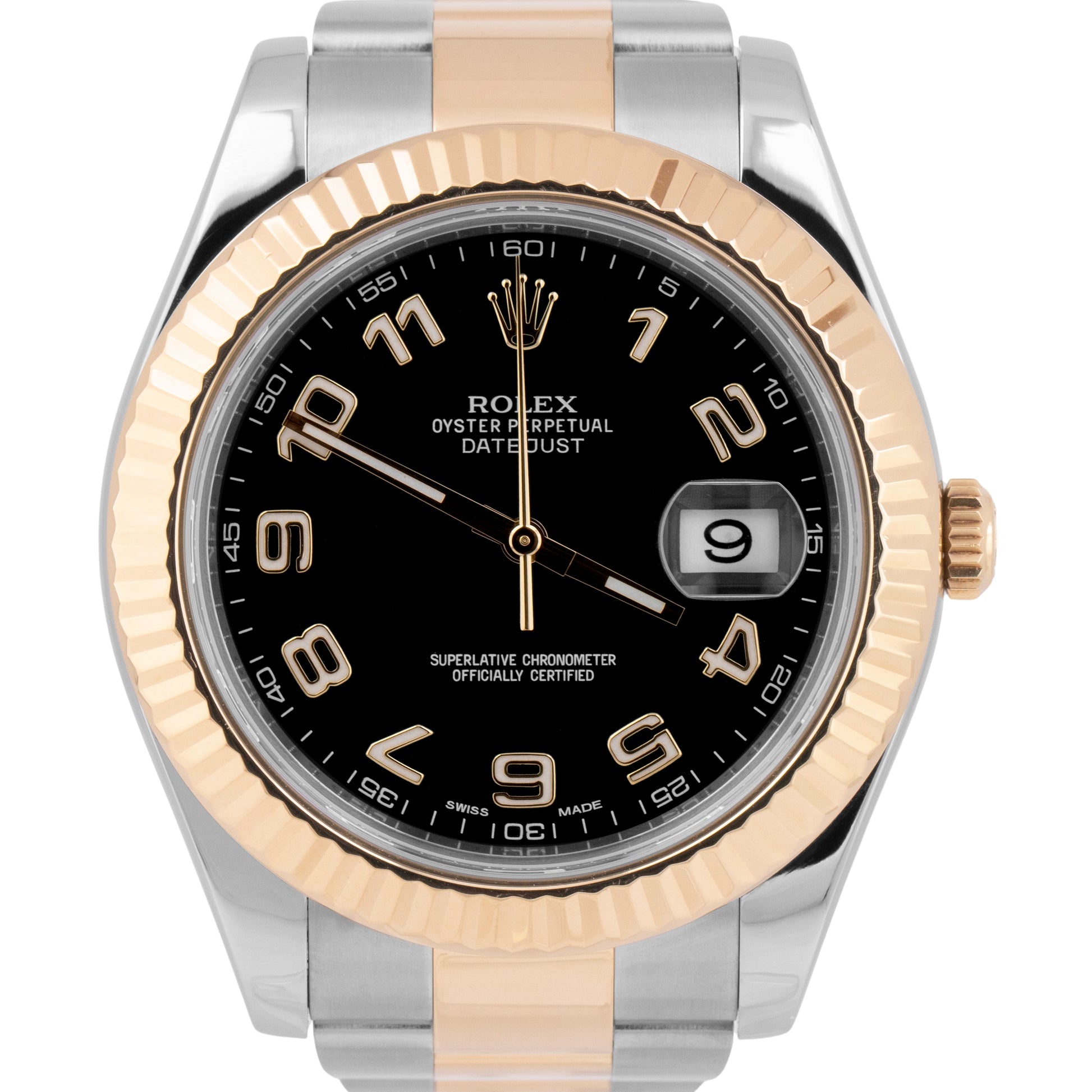 Rolex Datejust II Black Roman Two-Tone 18K Yellow Gold Stainless 41mm 116333