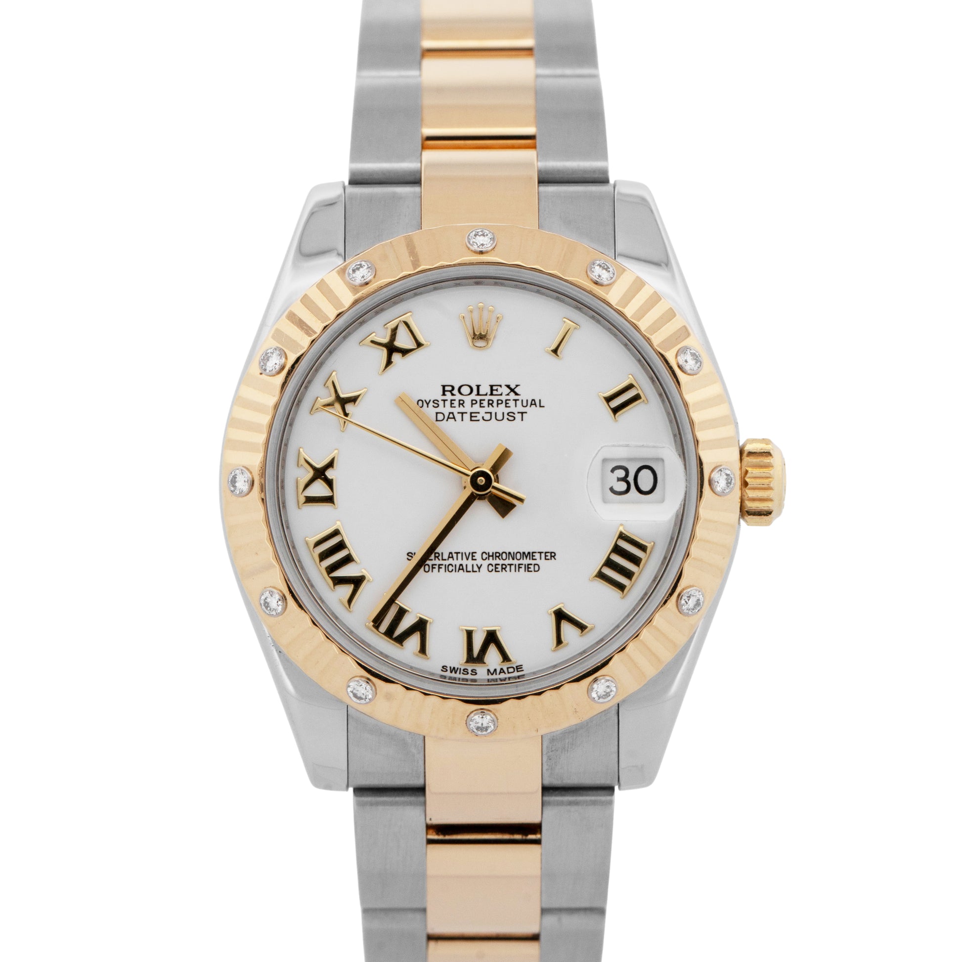 Rolex DateJust Mid-Size 31mm White Roman DIAMOND Two-Tone 18K Gold Watch 178313