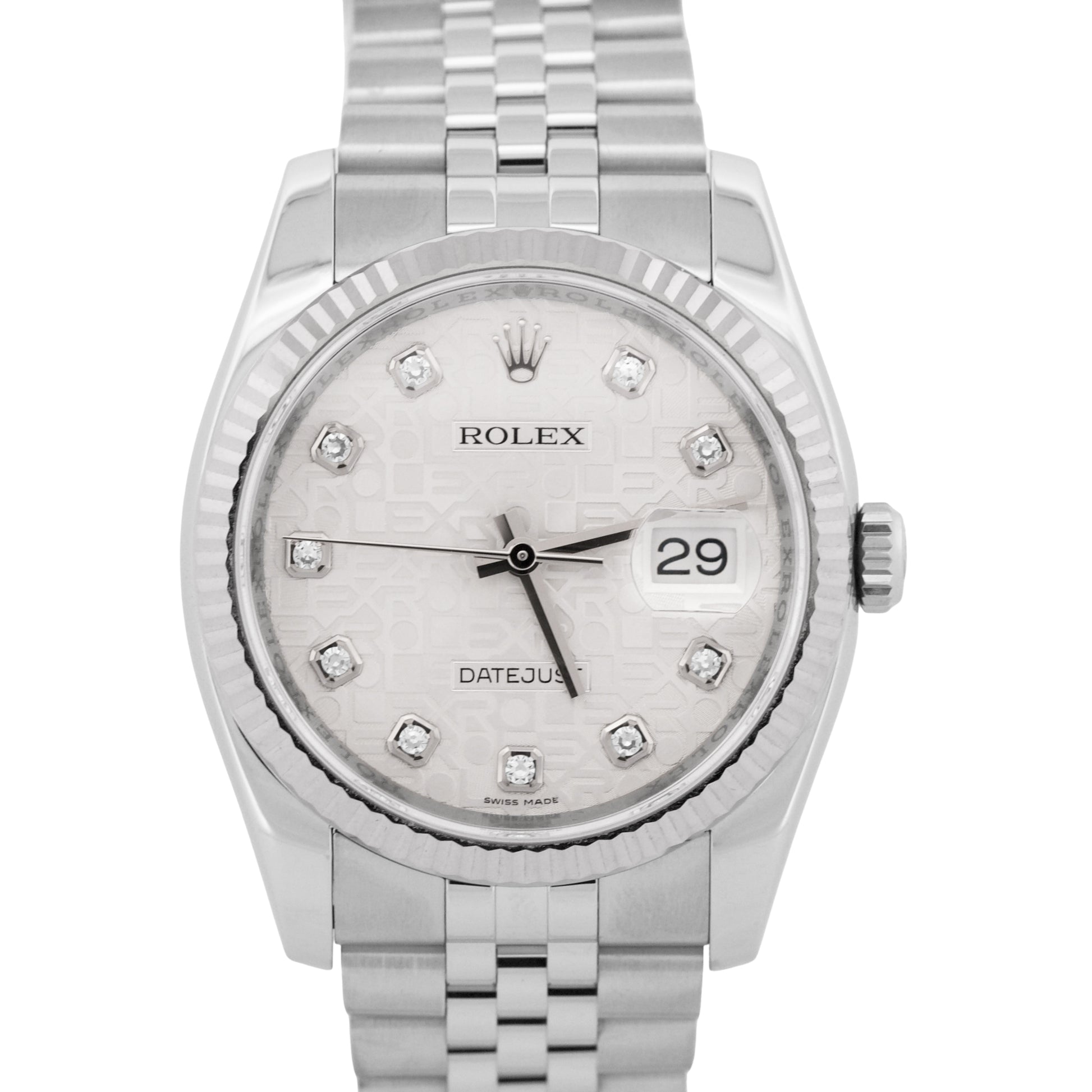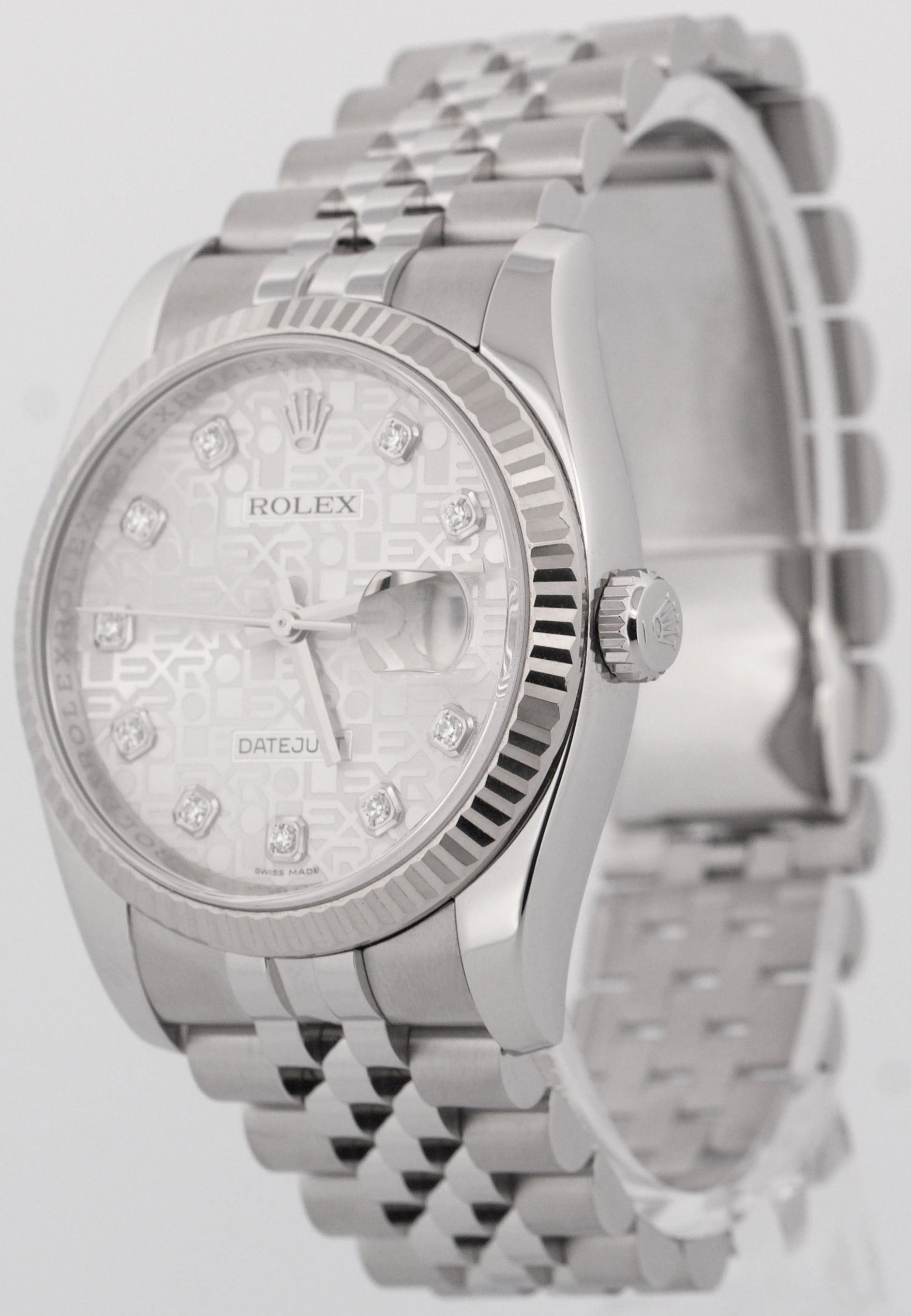 Rolex DateJust SILVER JUBILEE DIAMOND 36mm 18K White Gold Steel 116234 Watch