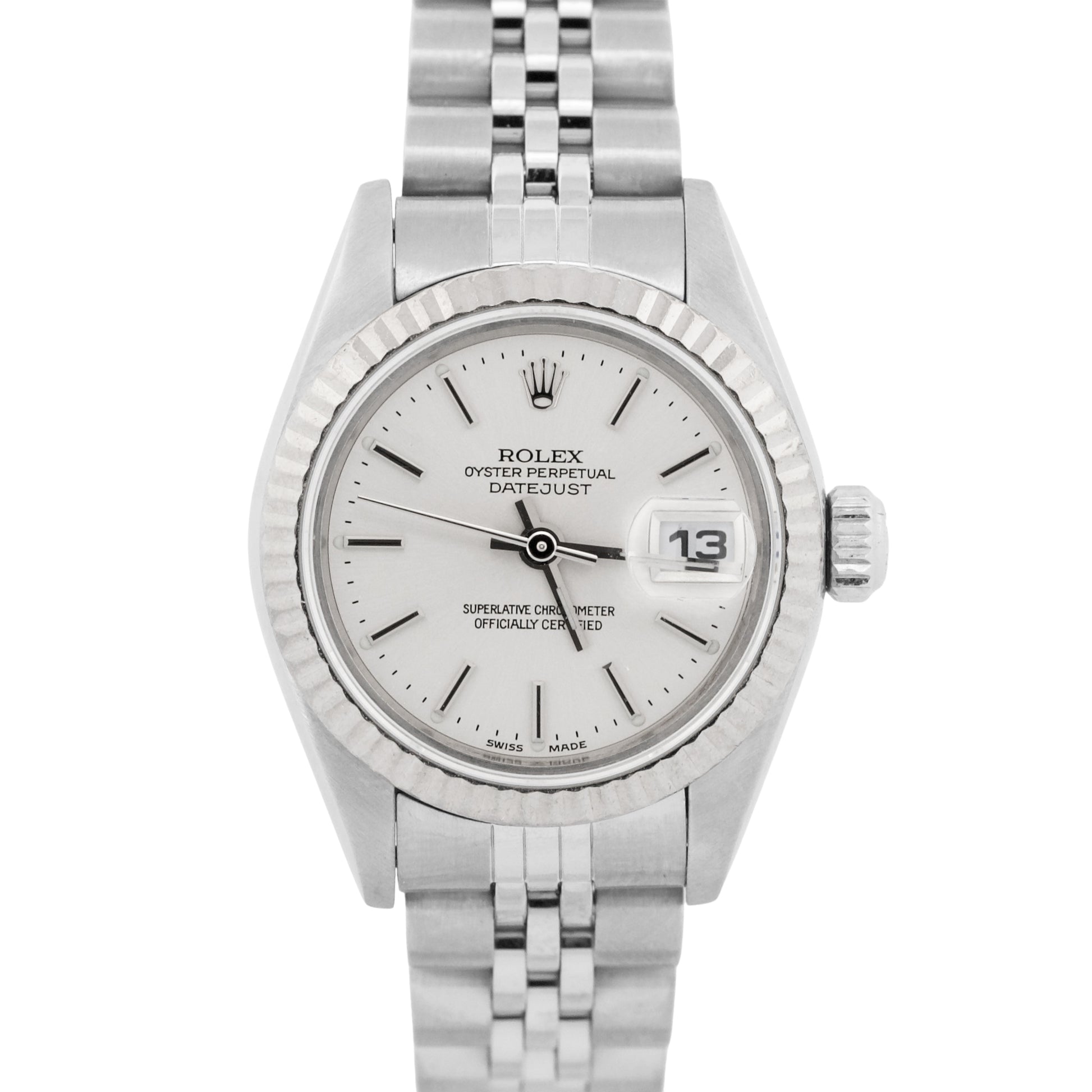 Rolex DateJust SILVER Stainless Steel 18K White Gold JUBILEE Fluted 79174 Watch