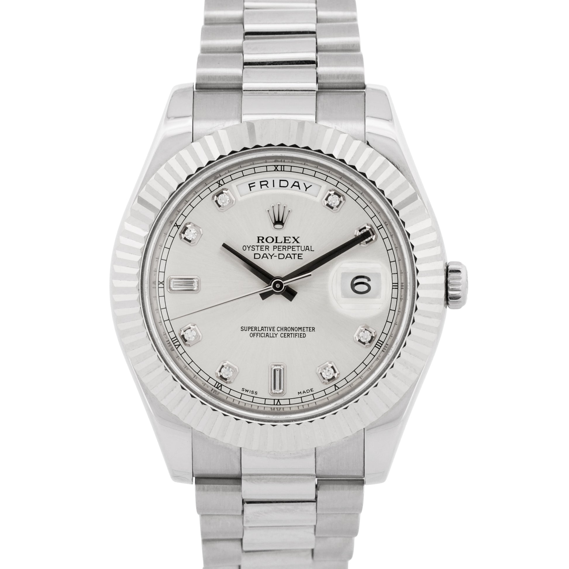 Rolex Day-Date II Presidential FACTORY SILVER DIAMOND 18K White Gold 41mm 218239
