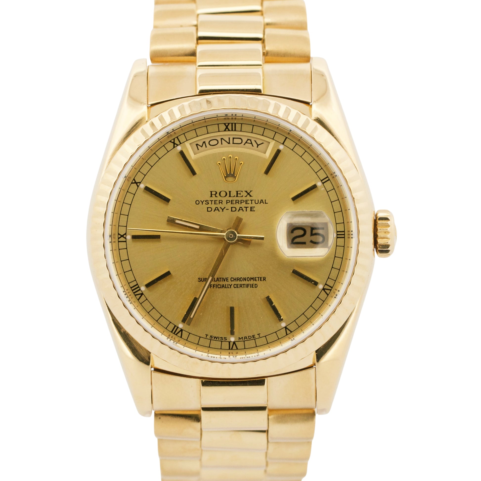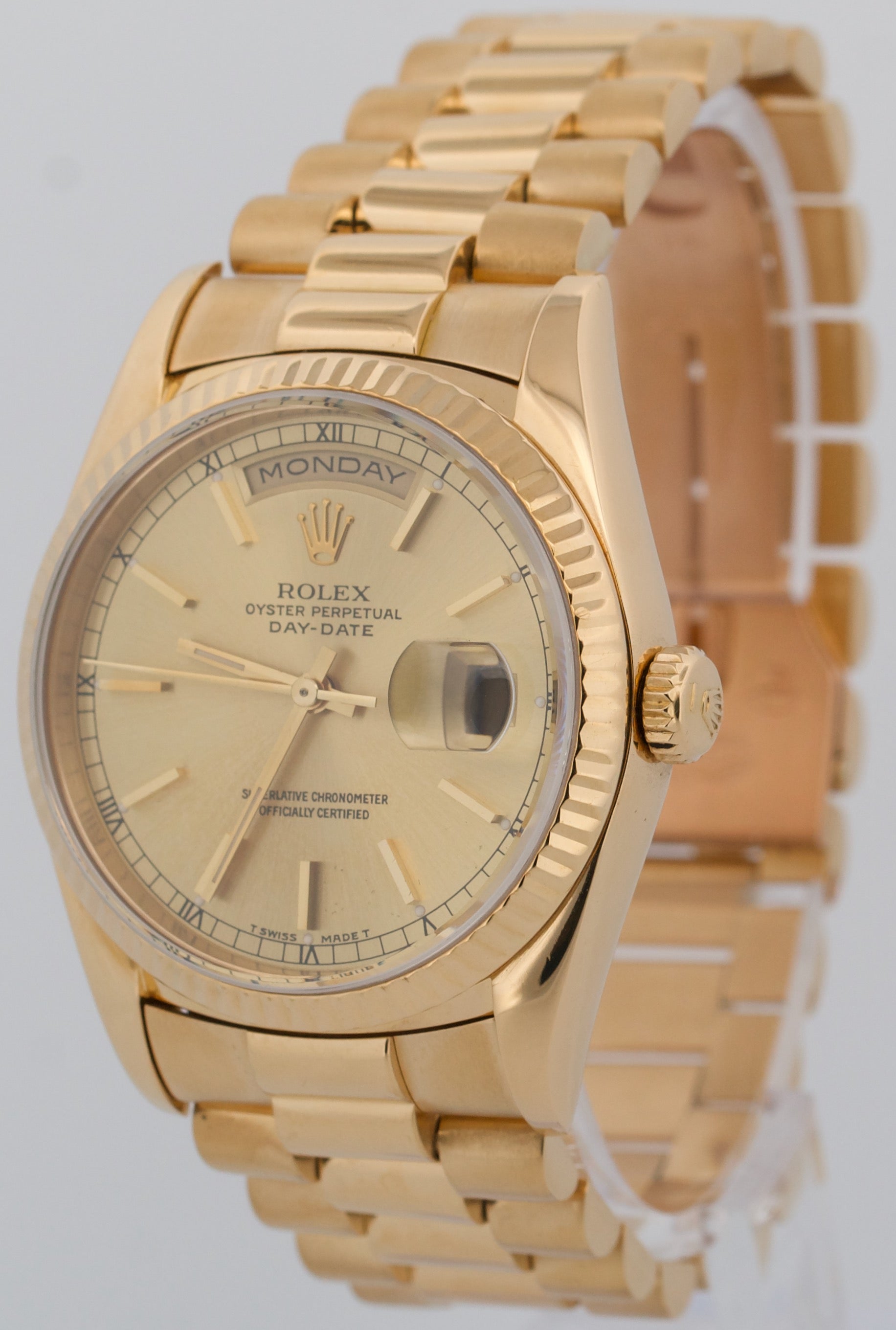 Rolex Day-Date President CHAMPAGNE 36mm 18K Yellow Gold Fluted 18238 Watch