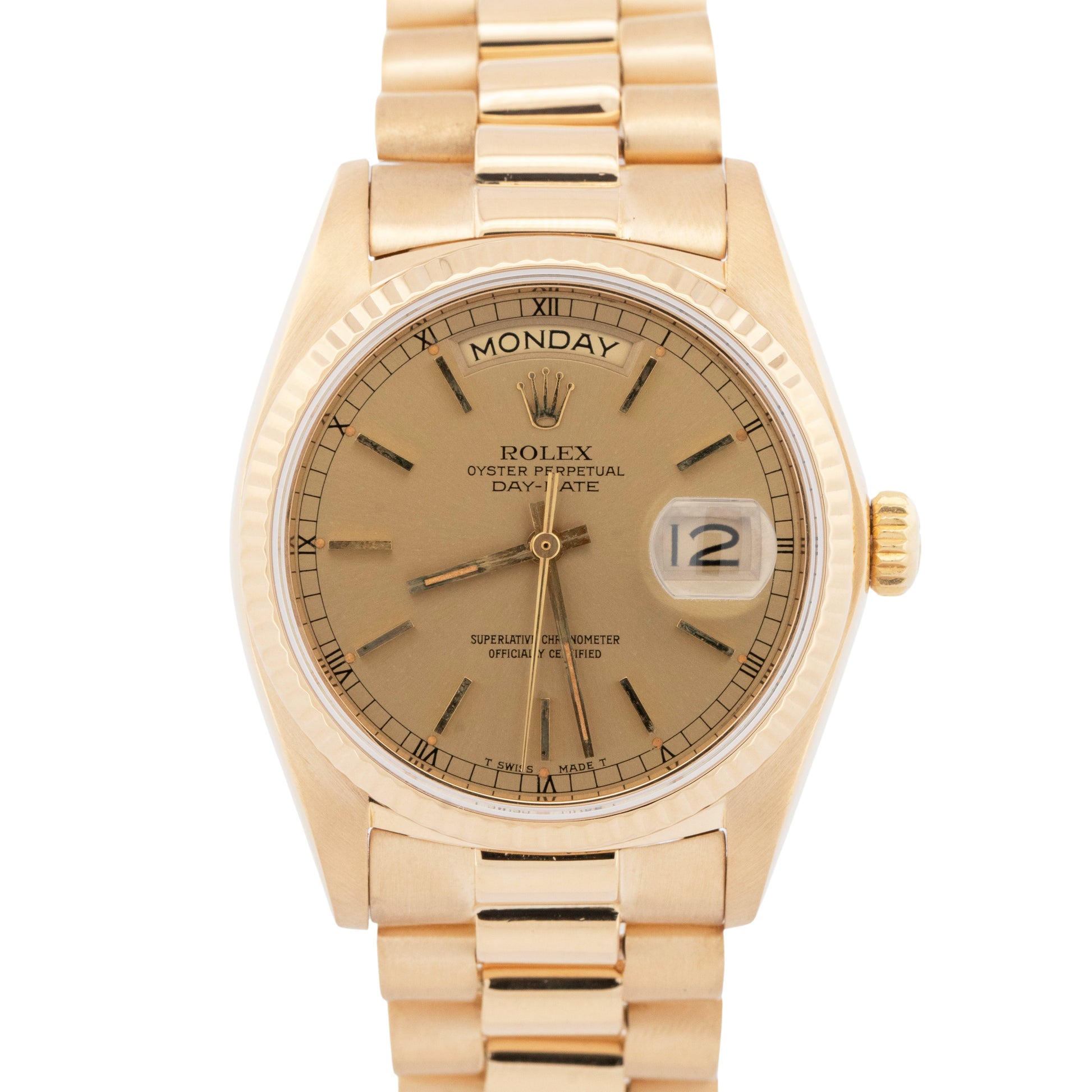 Rolex Day-Date President Champagne 36mm 18K Yellow Gold Fluted Watch 18038