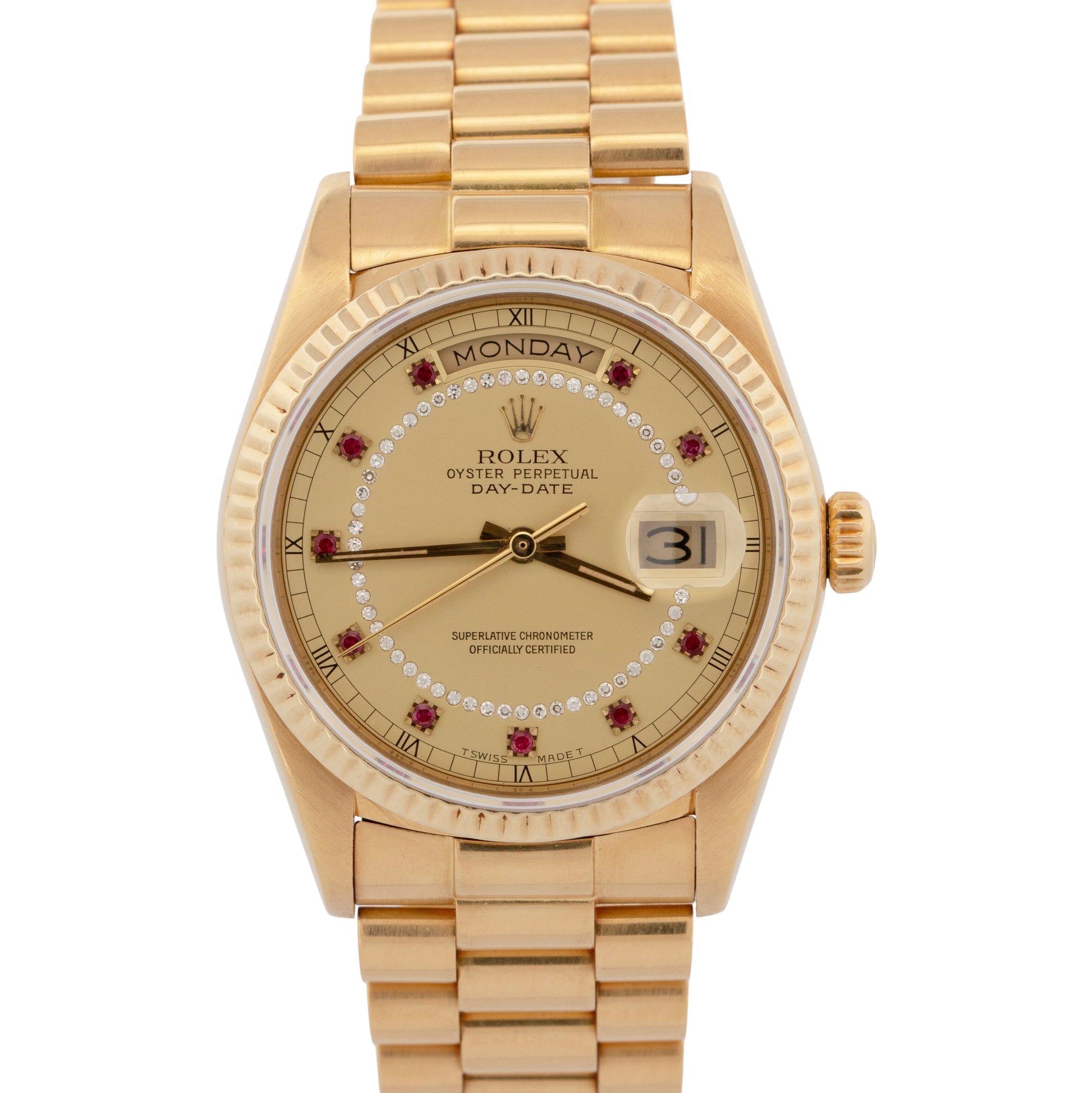 Rolex Day-Date President CHAMPAGNE DIAMOND RUBY STRING 36mm 18K Gold 18038