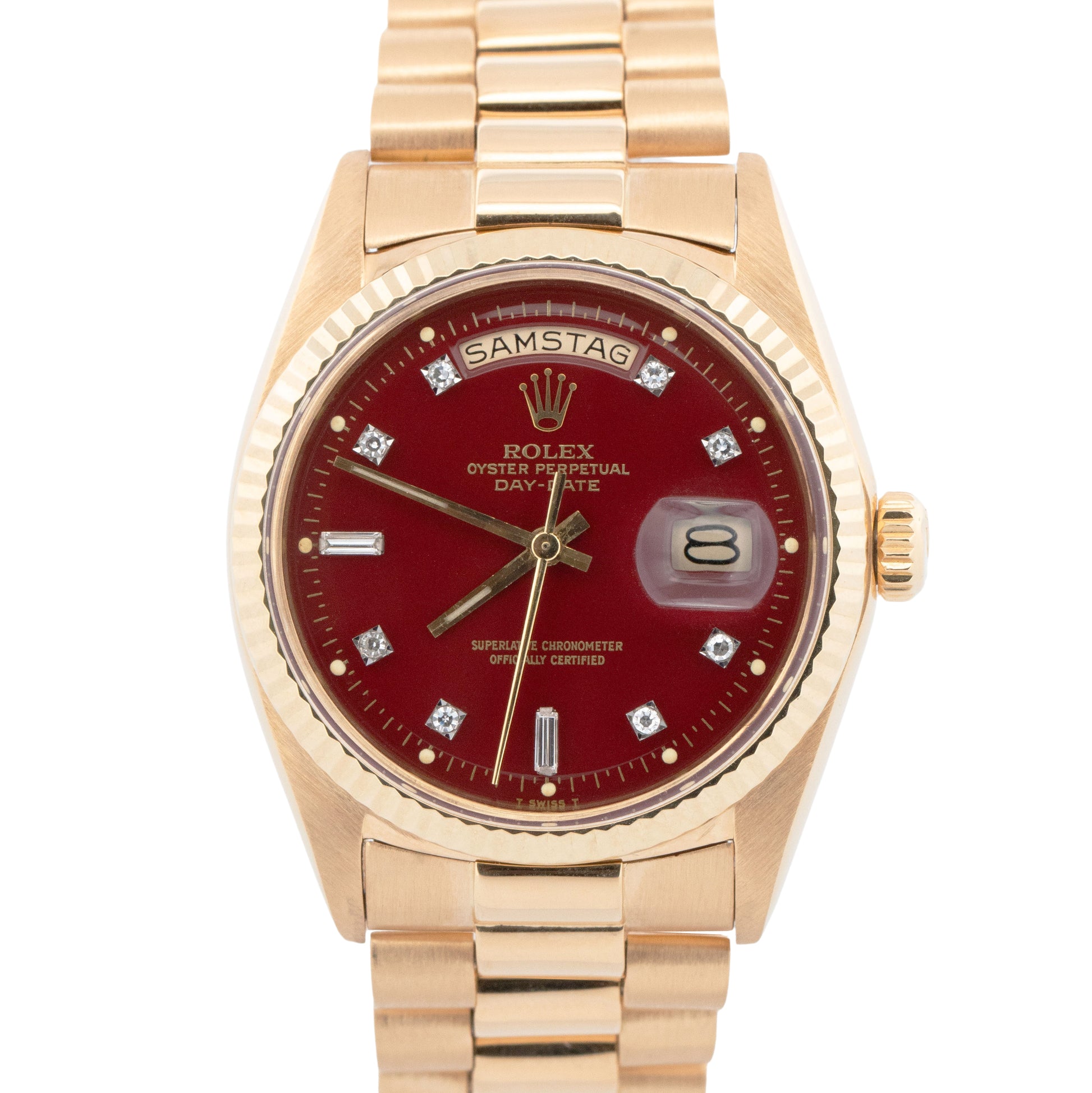 Rolex Day-Date President DIAMOND OXBLOOD STELLA Dial 36mm 18K Gold Watch 1803