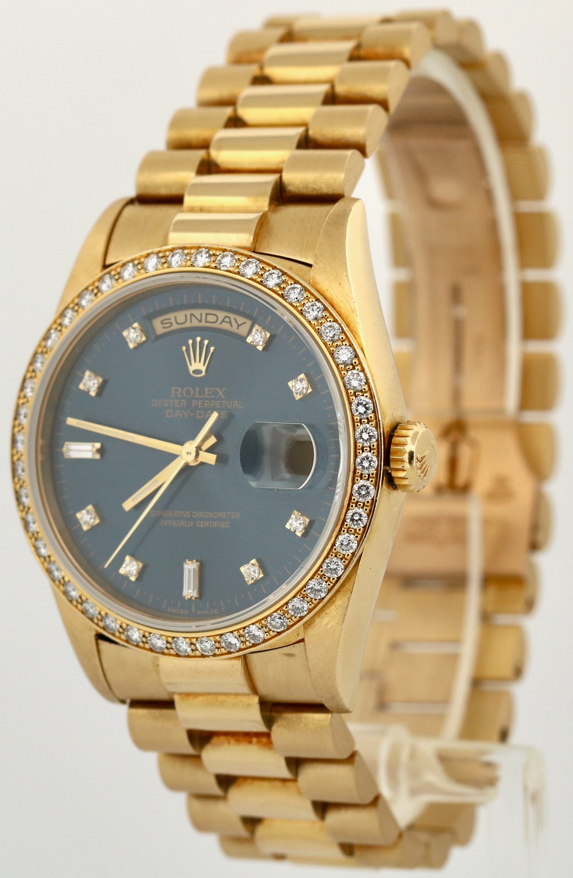 Rolex Day-Date President FACTORY BLUE DIAMOND 36mm 18K Yellow Gold Watch 18348