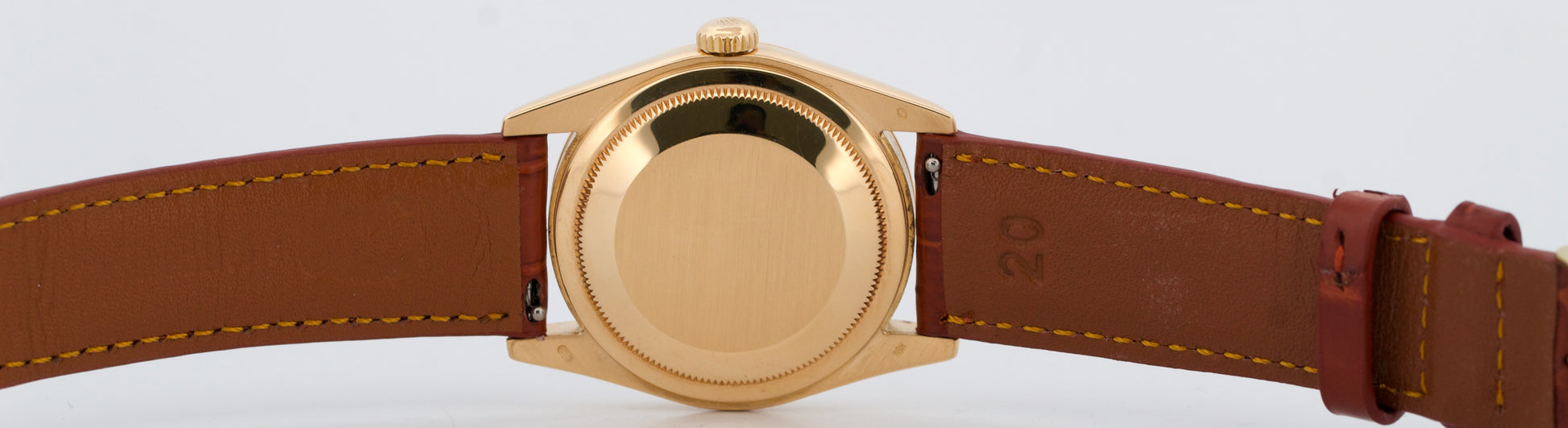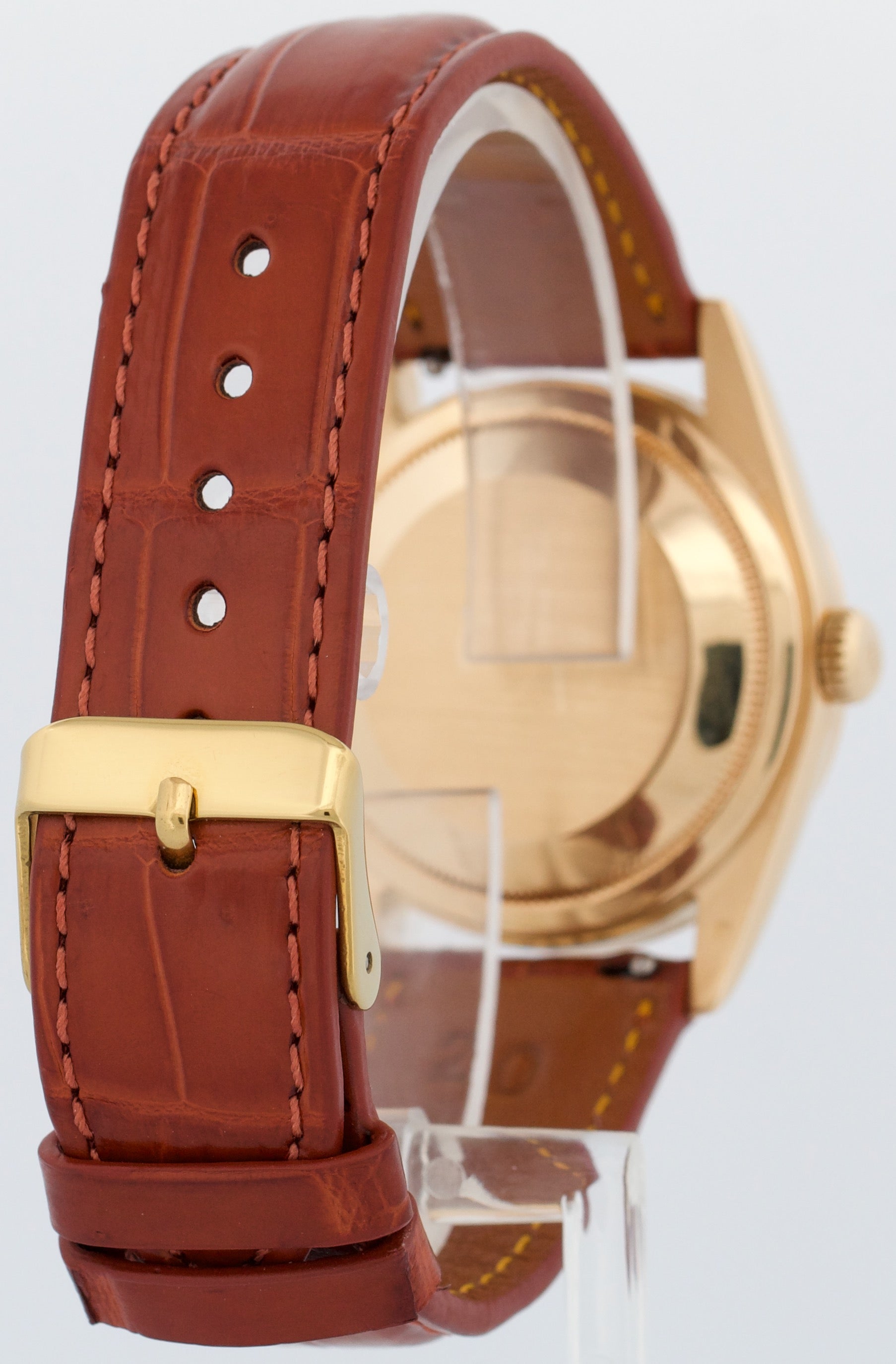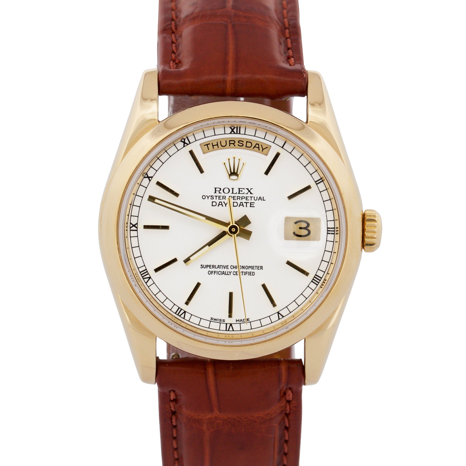 Rolex Day-Date WHITE 18K Yellow Gold Smooth Brown Leather 36mm Watch 118208