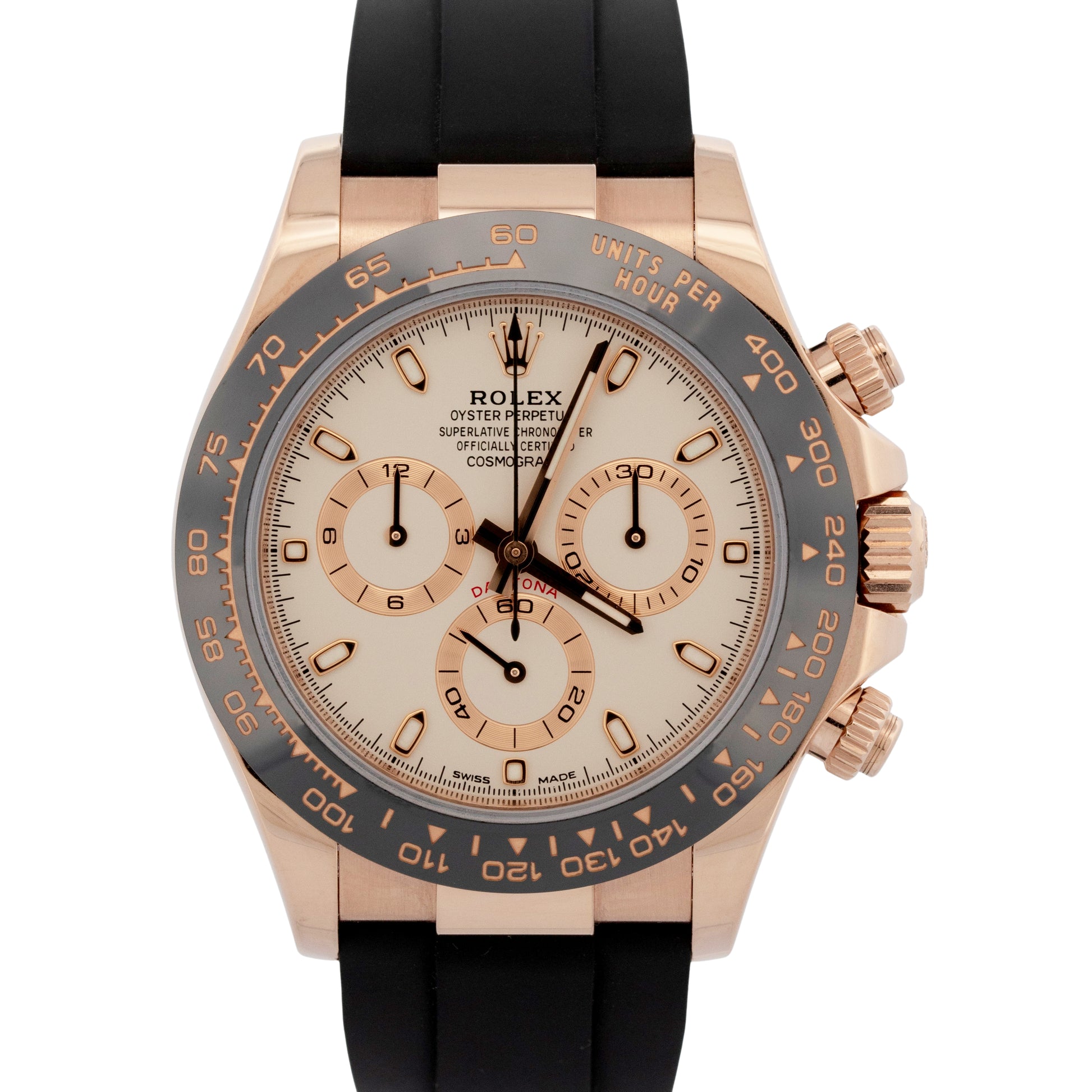 Rolex Daytona Cosmograph 18k Rose Gold IVORY 40mm Oysterflex Ceramic 116515 BOX