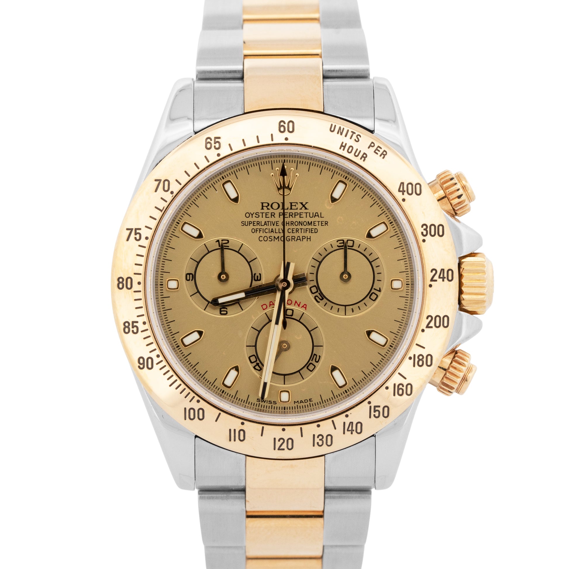 Rolex Daytona Cosmograph CHAMPAGNE 18K Yellow Gold Two-Tone Steel Watch 116523