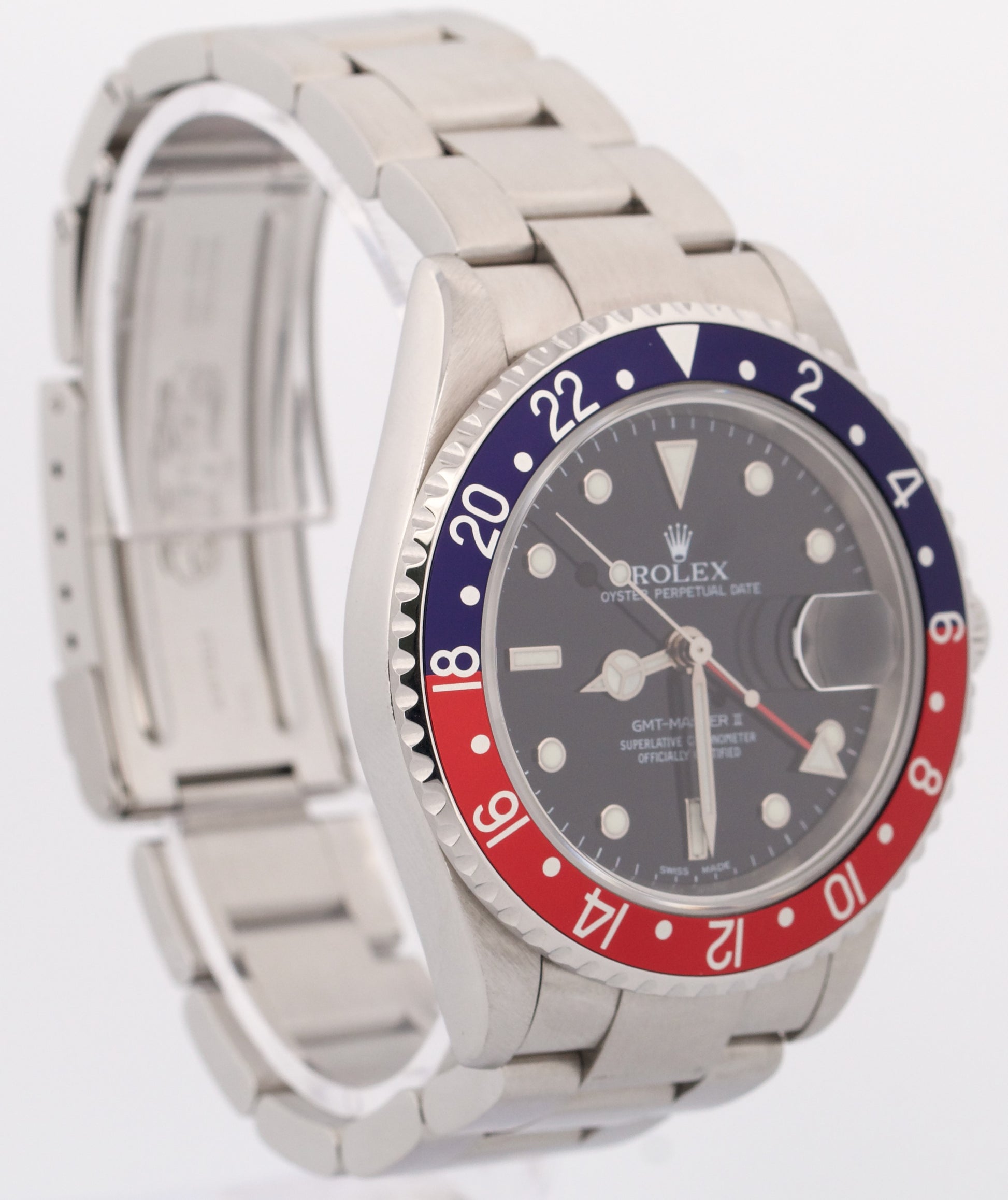 Rolex GMT-Master II 40mm PEPSI Red Blue Stainless Steel NO-HOLES 16710 Watch