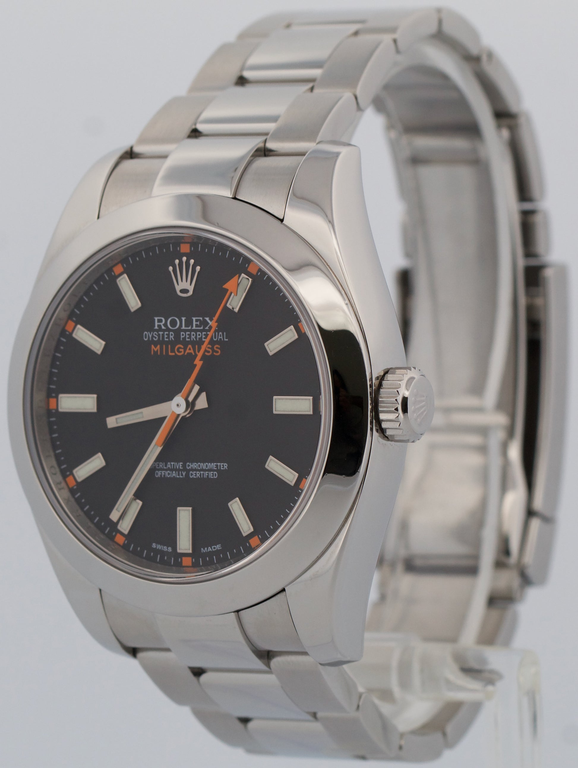 Rolex Milgauss BLACK Orange Stainless Steel 40mm Smooth Oyster 116400 Watch