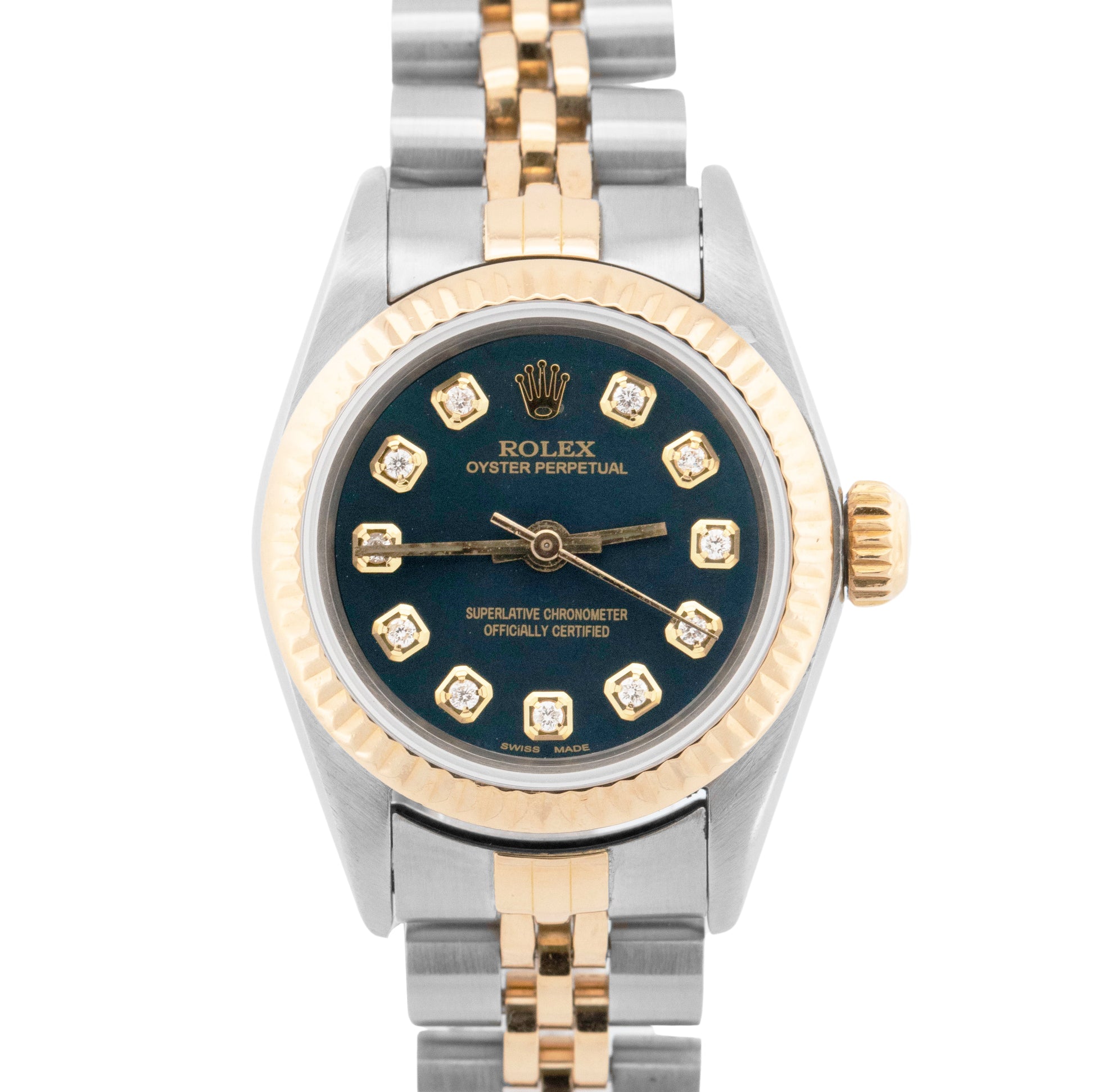 Rolex Oyster Perpetual 24mm BLUE DIAMOND Two-Tone 18K Gold Jubilee Watch 67193