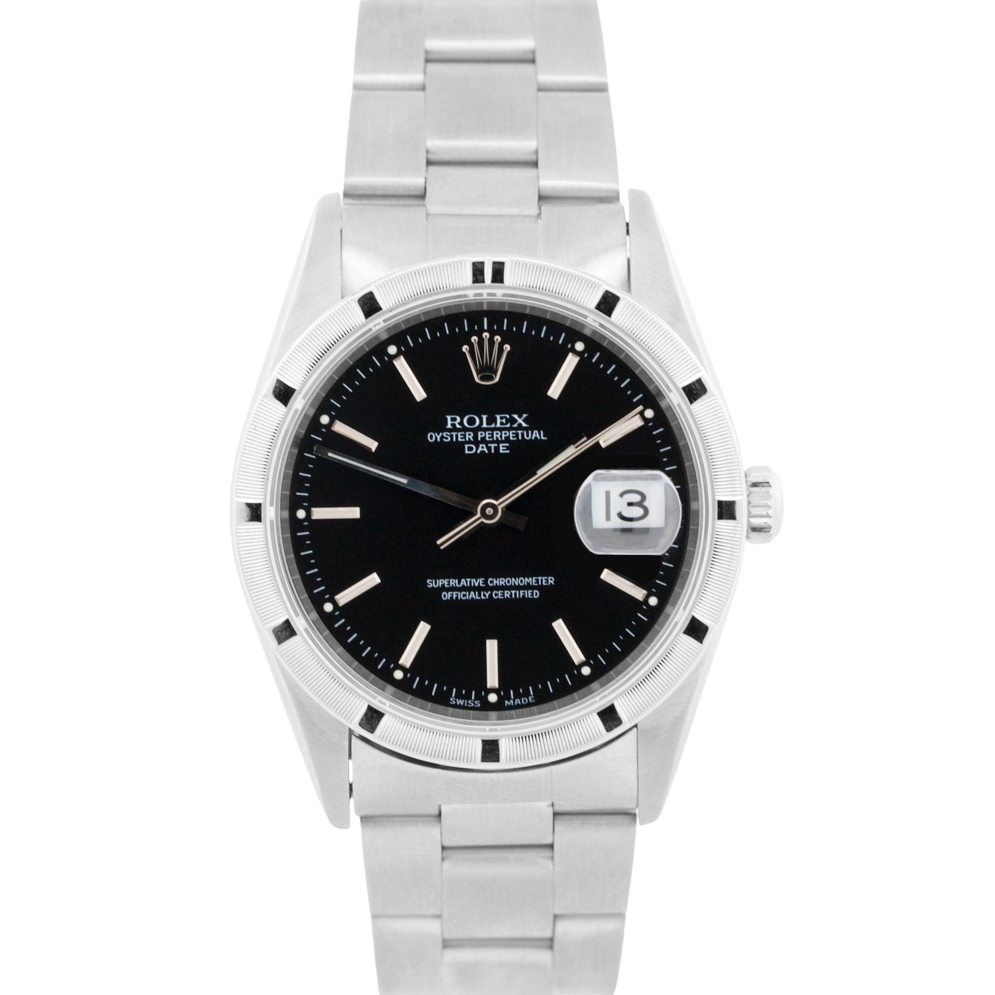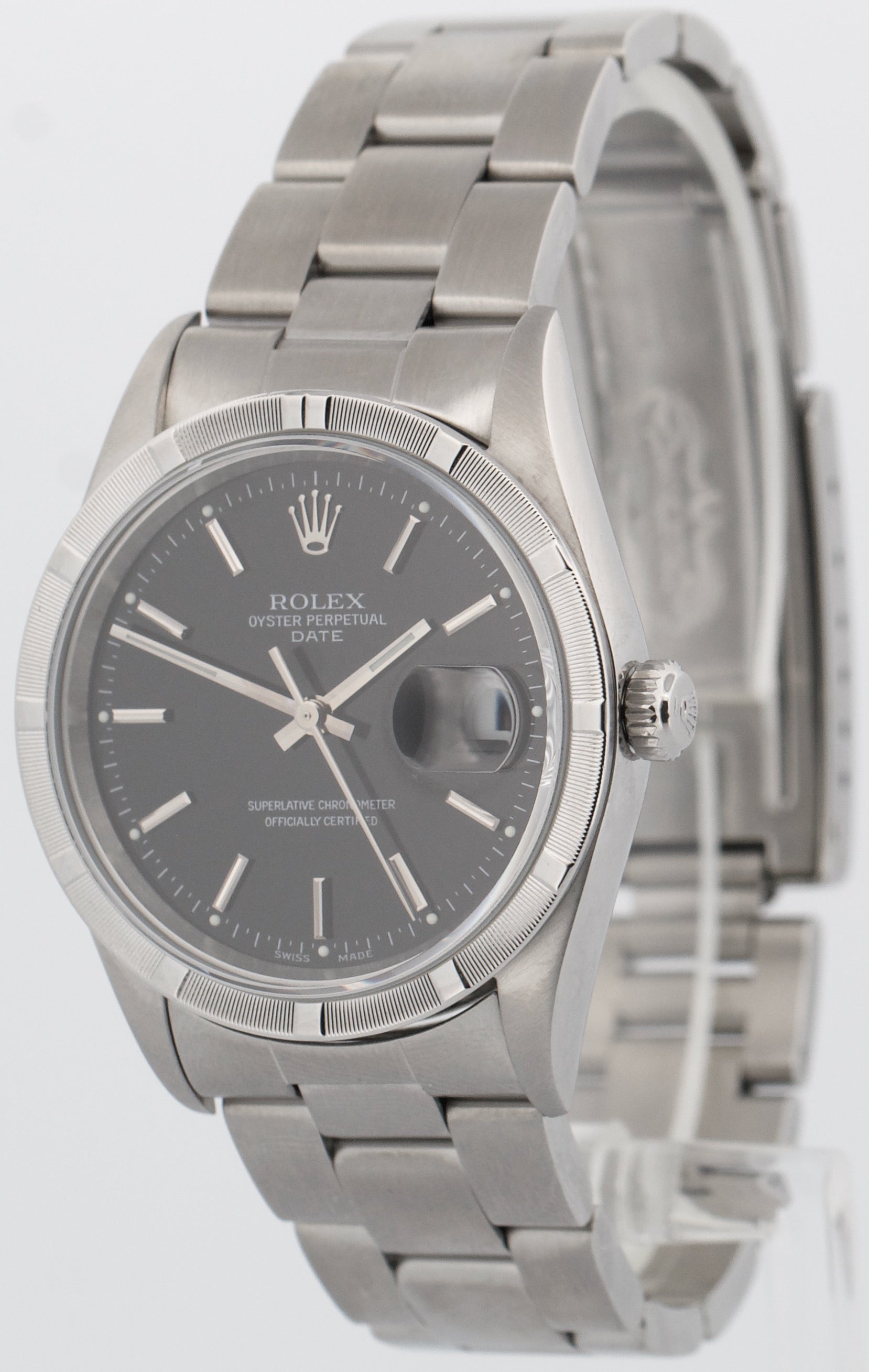 Rolex Oyster Perpetual Date 34mm BLACK Stainless Steel Oyster NO-HOLES 15210