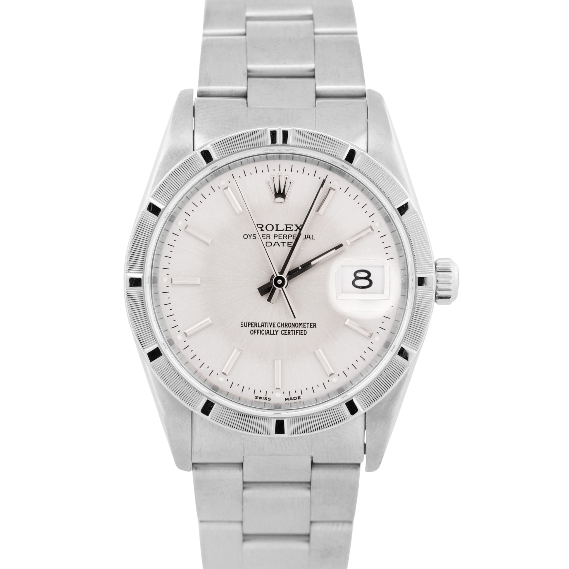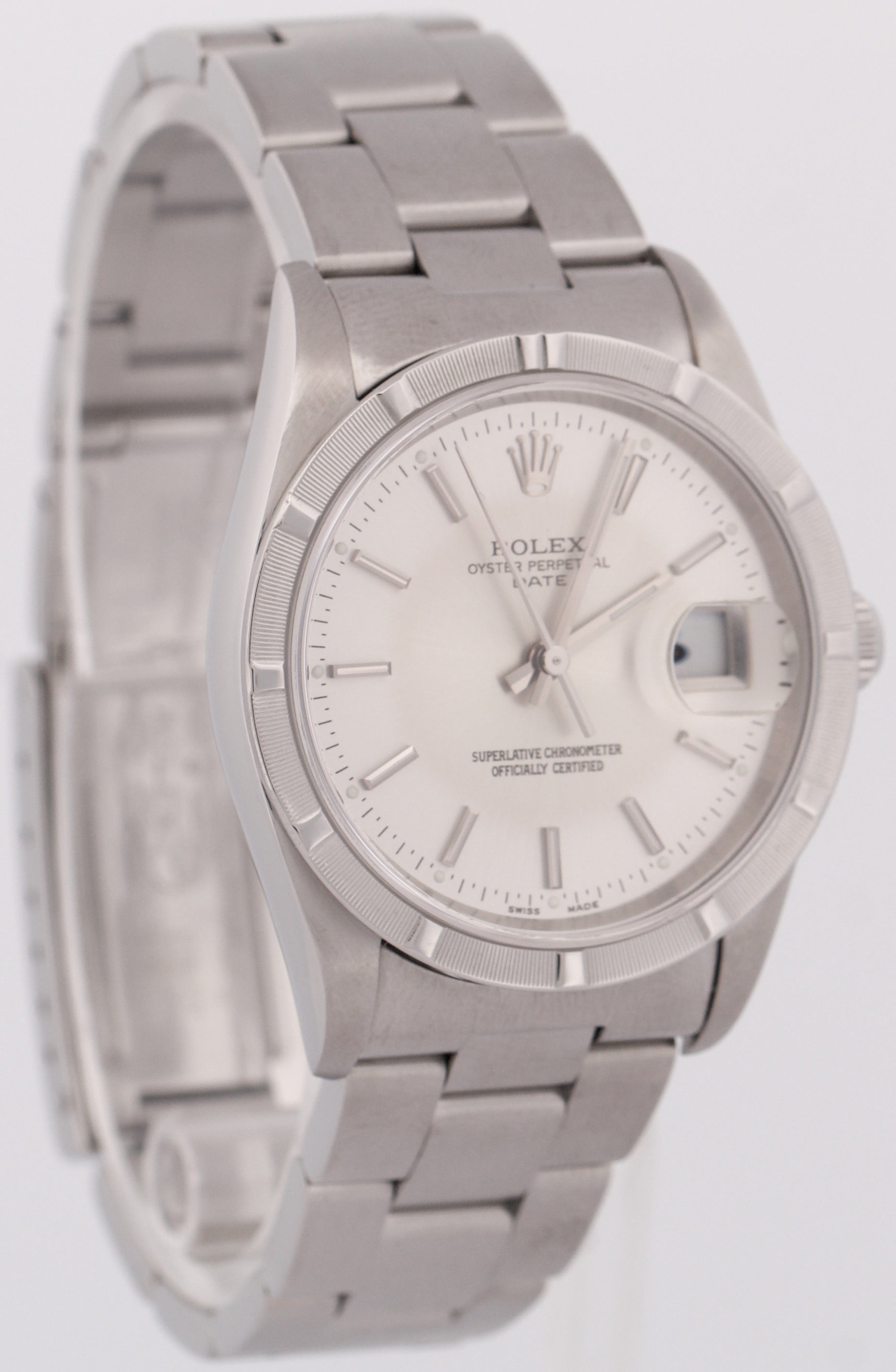 Rolex Oyster Perpetual Date 34mm SILVER Stainless Steel Oyster NO-HOLES 15210