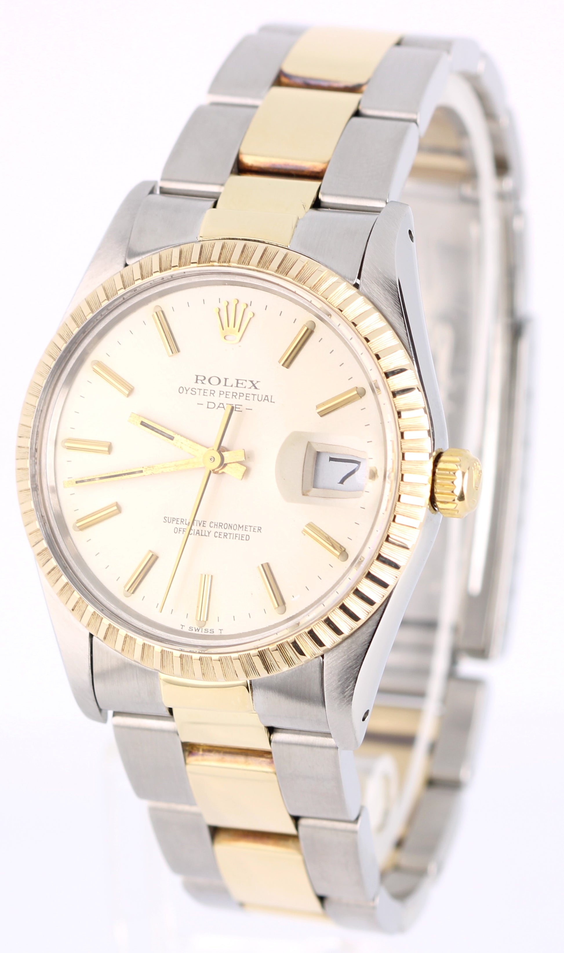 VINTAGE Rolex Oyster Perpetual DATE Two-Tone Gold Steel Silver 34mm 15053 Watch