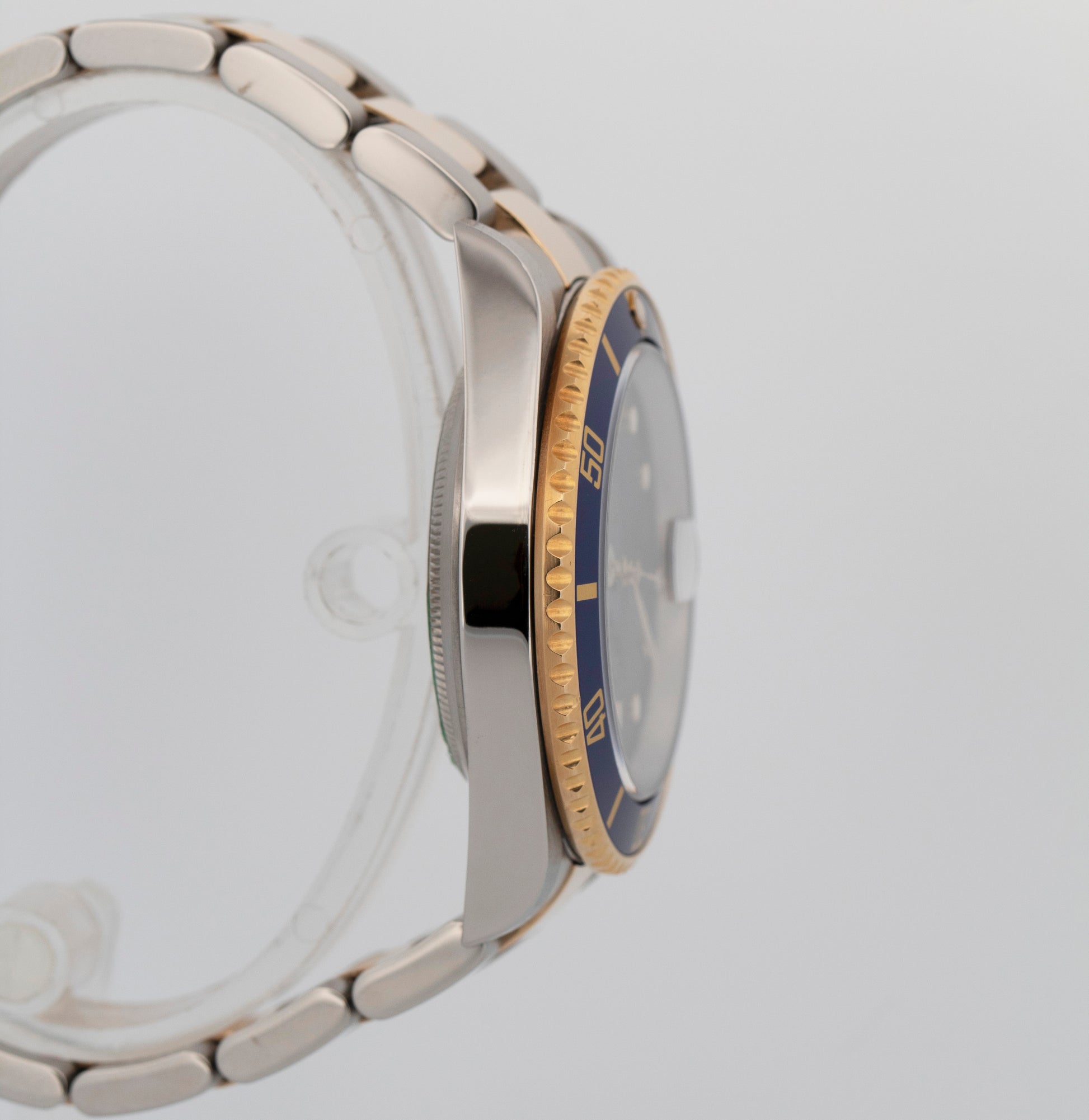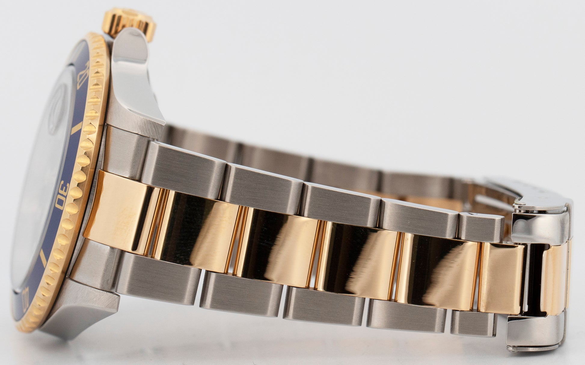 Rolex Submariner Date 40mm BLUE 18K Gold No-Holes GOLD BUCKLE Steel 16613 Watch