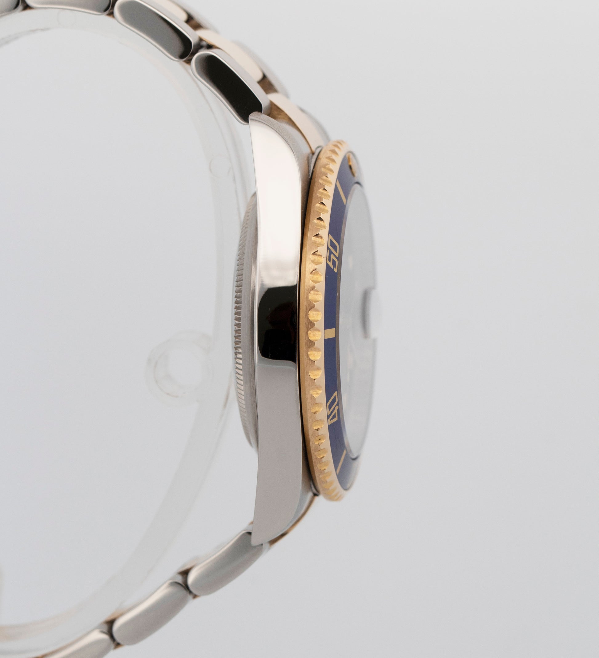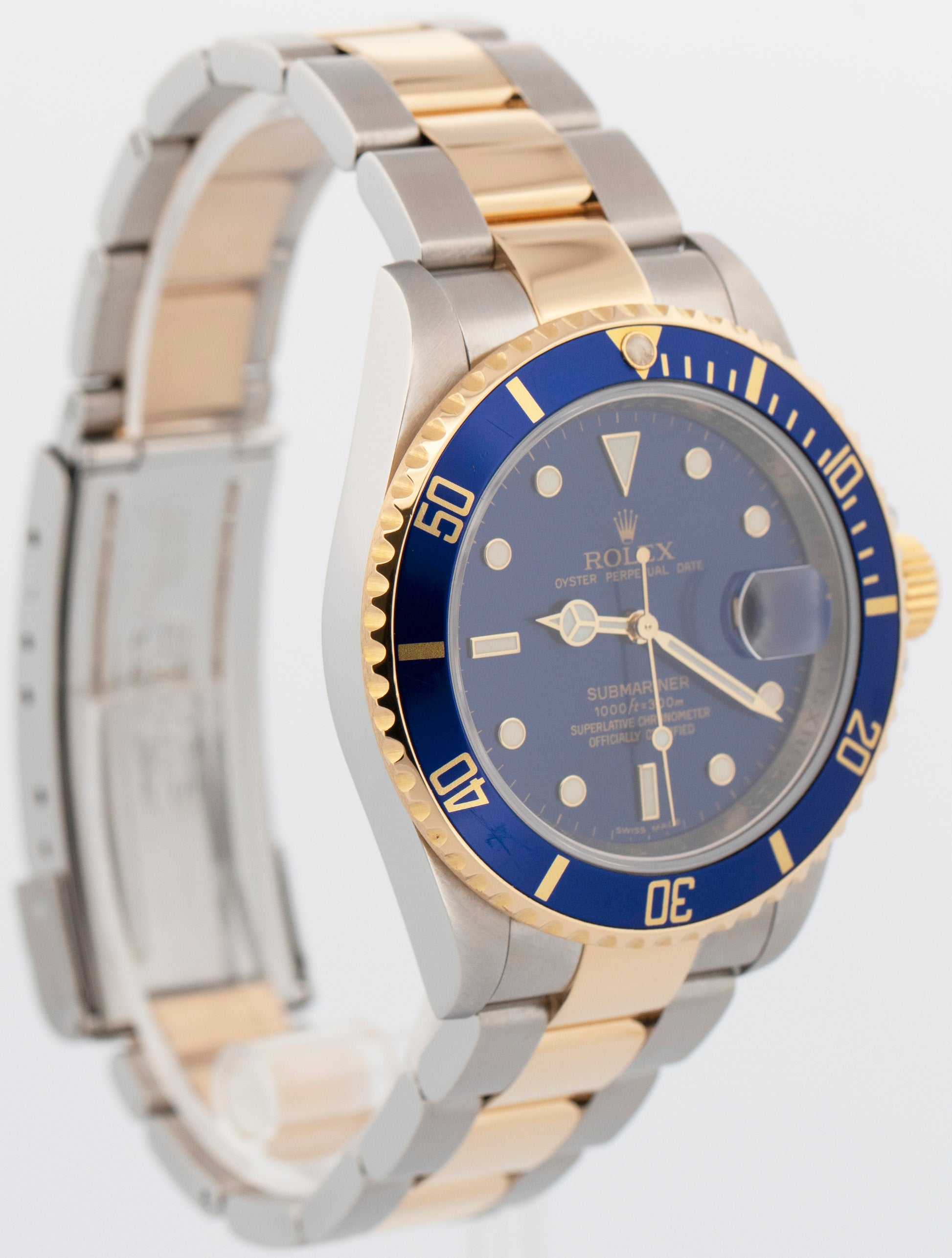 Rolex Submariner Date 40mm BLUE 18K Gold REHAUT No-Holes Steel 16613 Watch