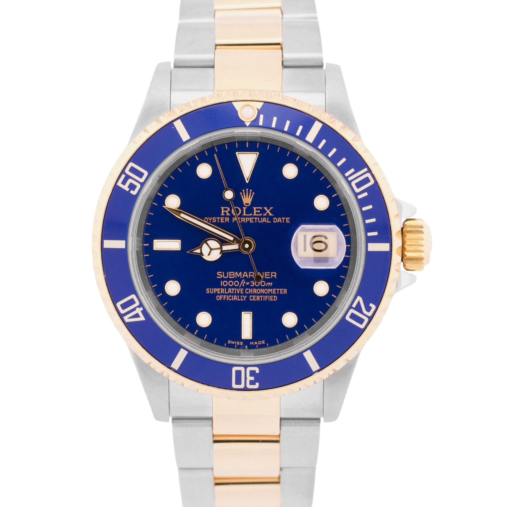 Rolex Submariner Date 40mm BLUE Two-Tone 18K Yellow Gold GOLD BUCKLE 16613