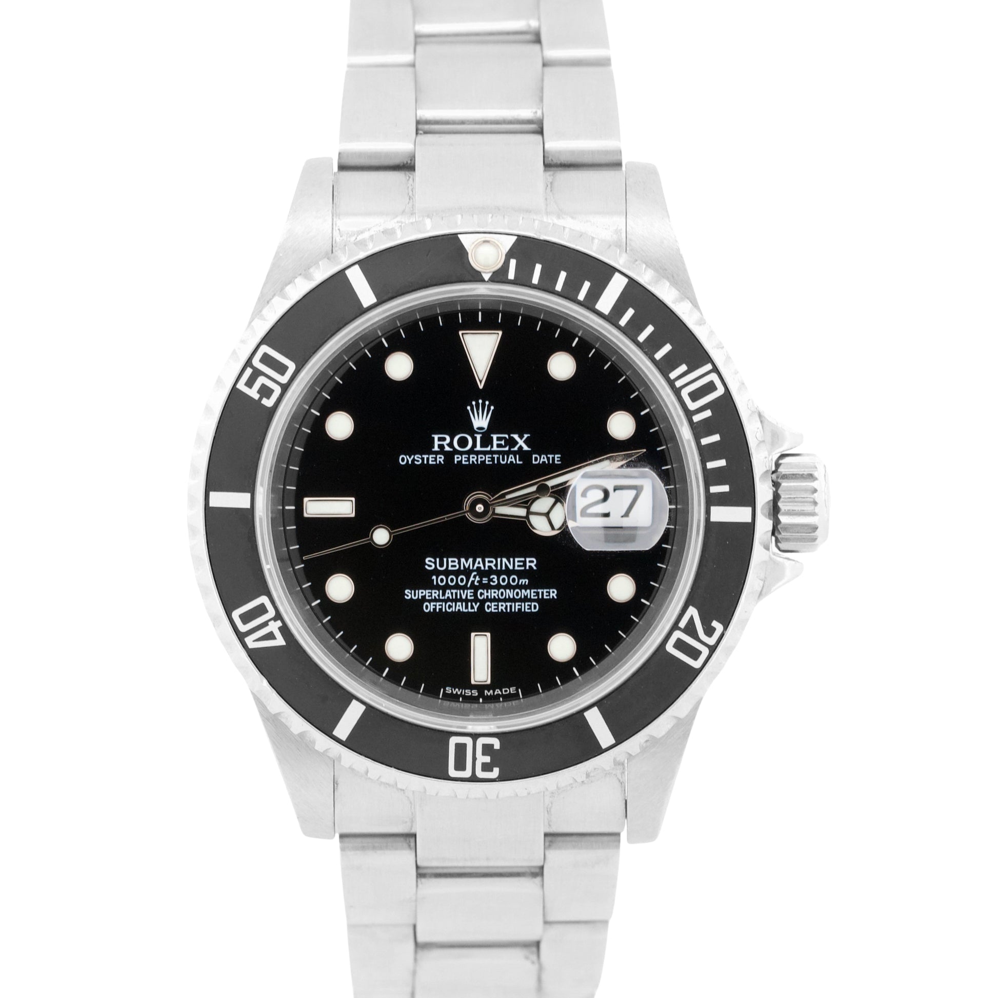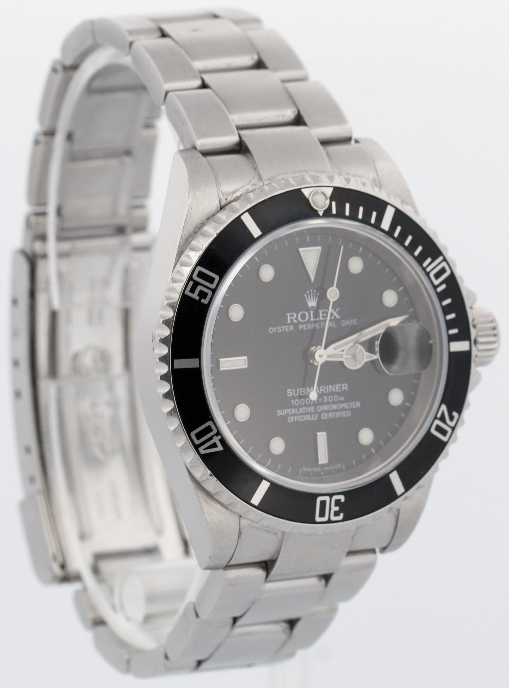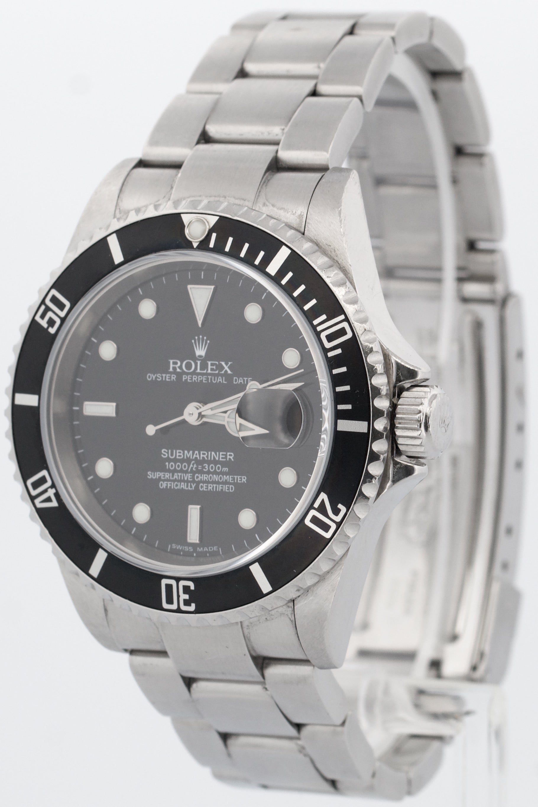 Rolex Submariner Date BLACK NO-HOLES Stainless Steel Dive 40mm 16610 Watch