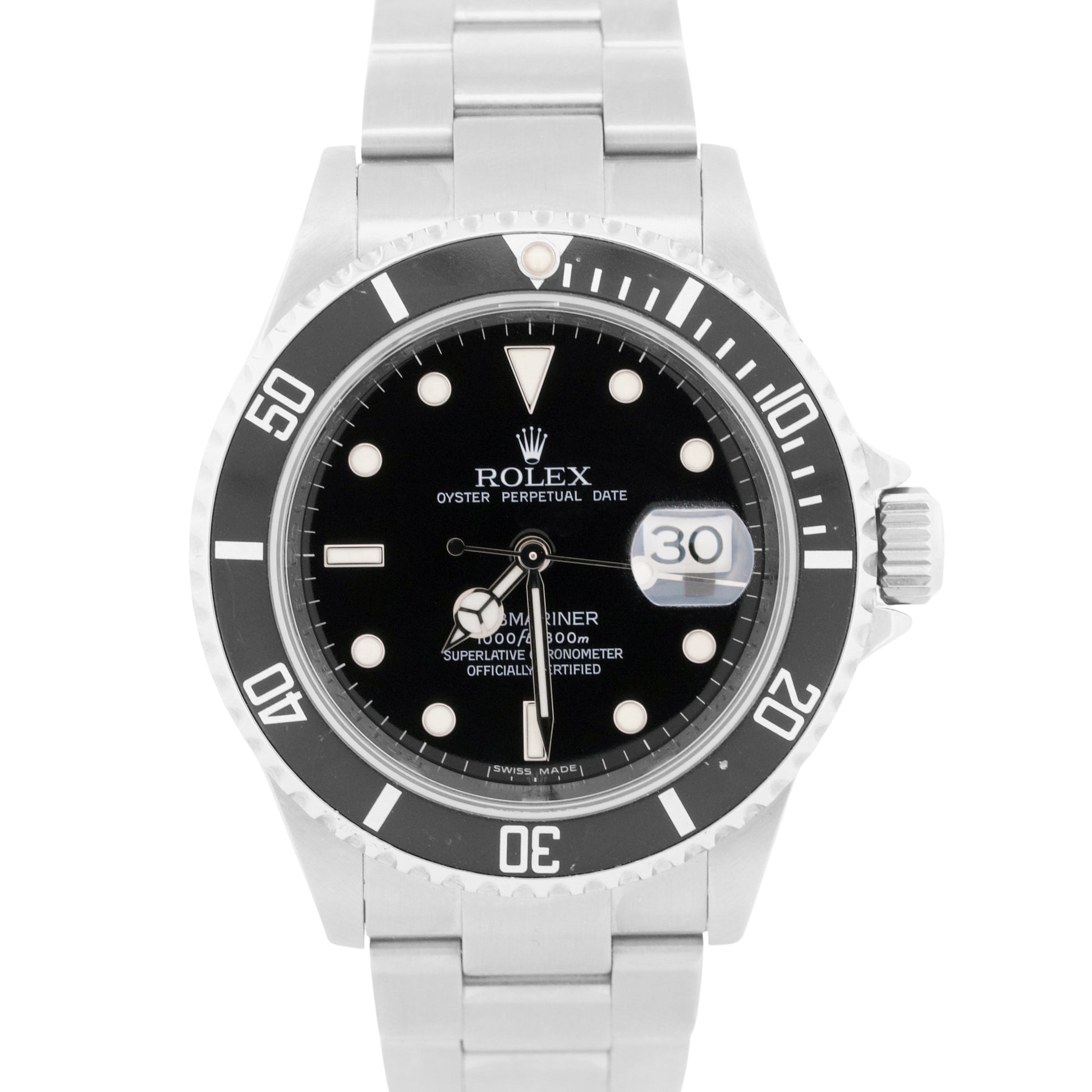 Rolex Submariner Date Black REHAUT Stainless Steel NO-HOLES 40mm Watch 16610
