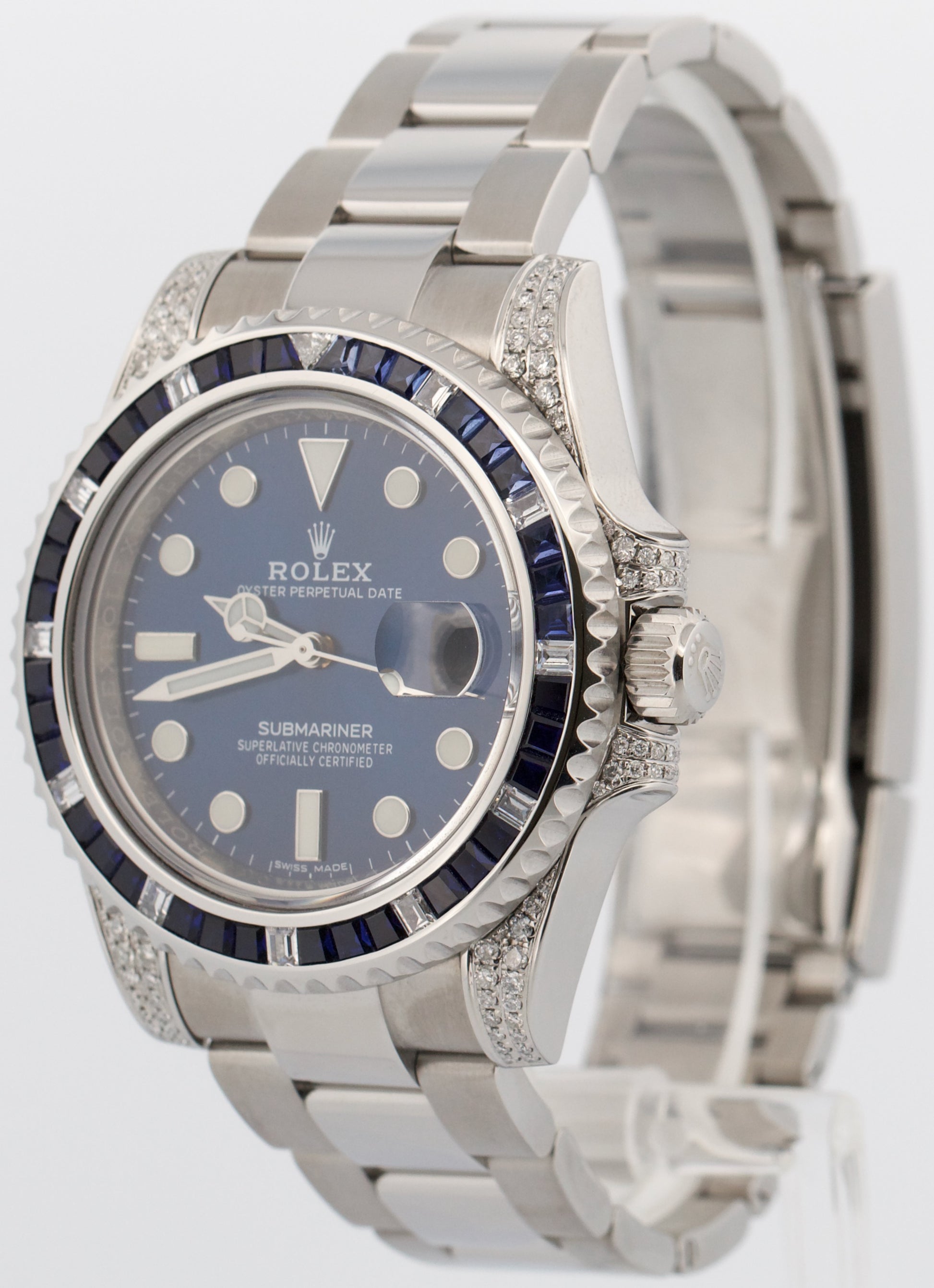 Rolex Submariner Date BLUE DIAMOND SAPPHIRE Stainless Steel 40mm Watch 116610
