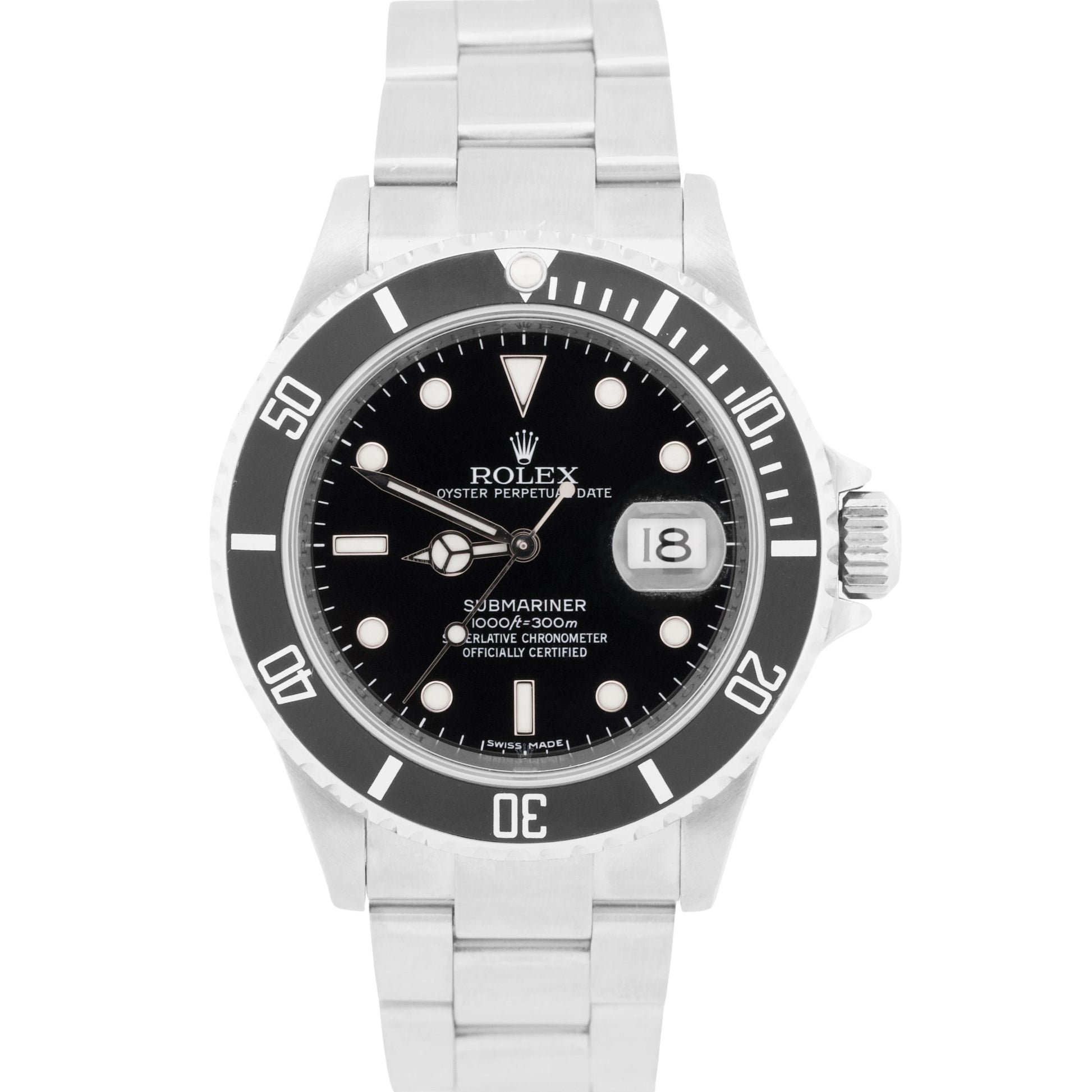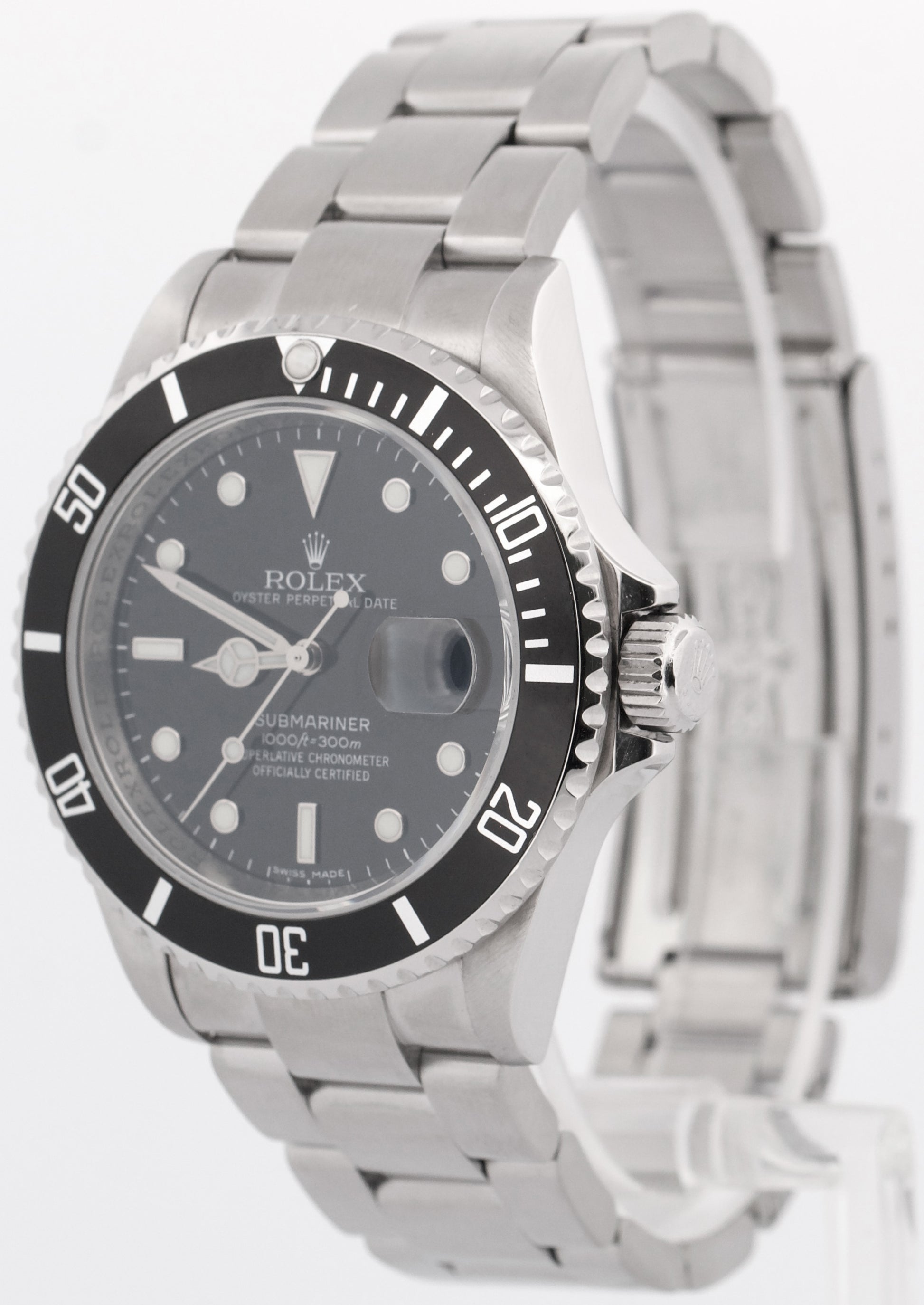 Rolex Submariner Date NO-HOLES Stainless Steel Black REHAUT 40mm 16610T Watch