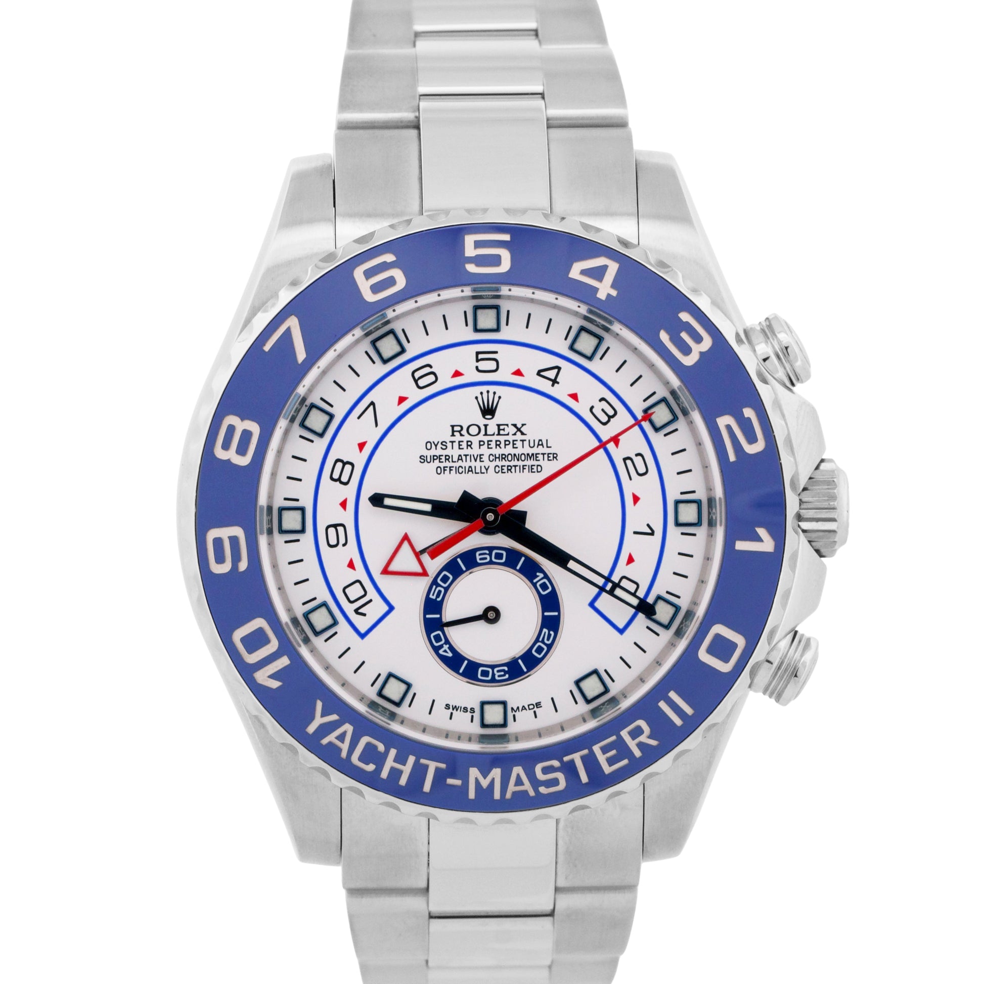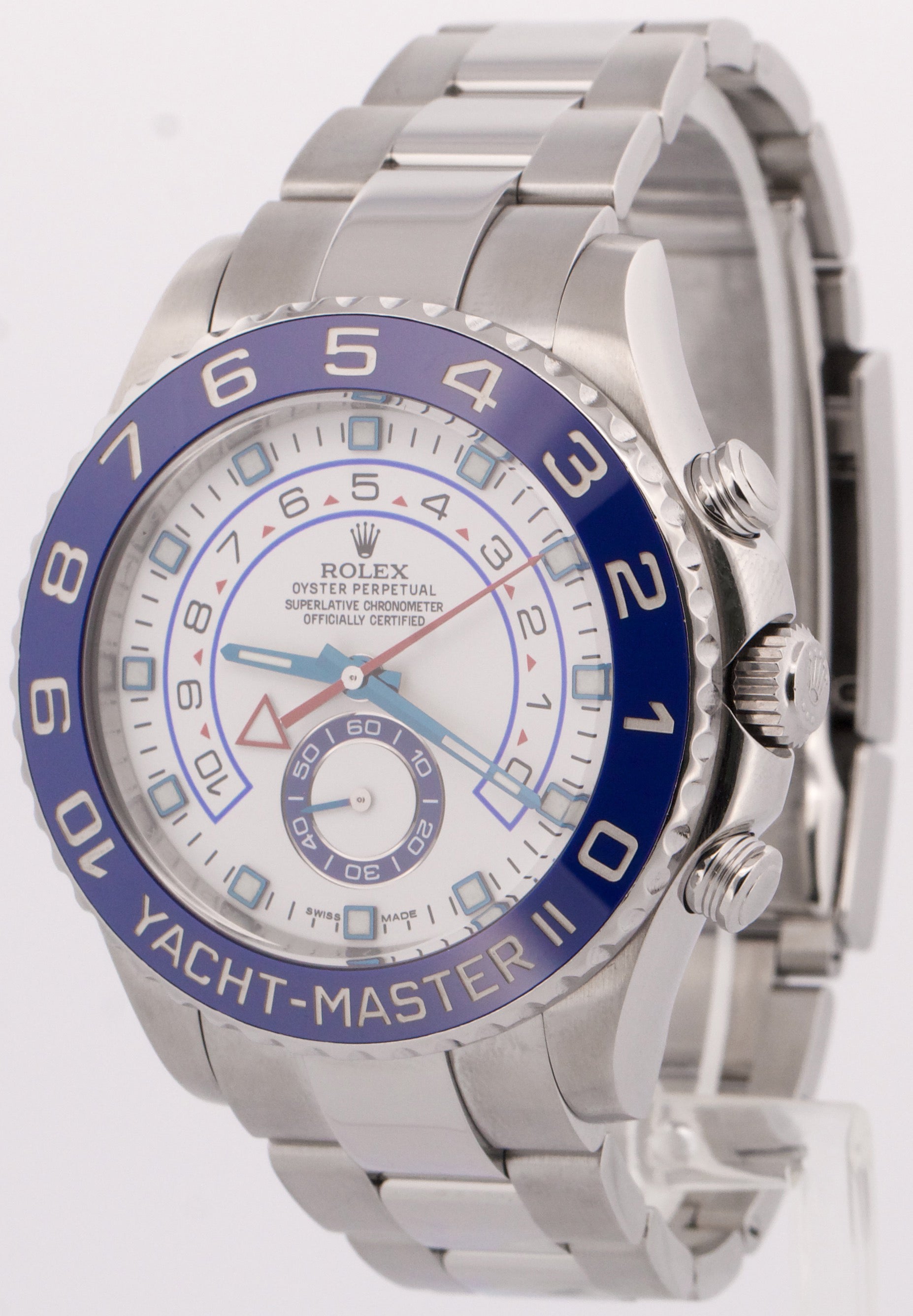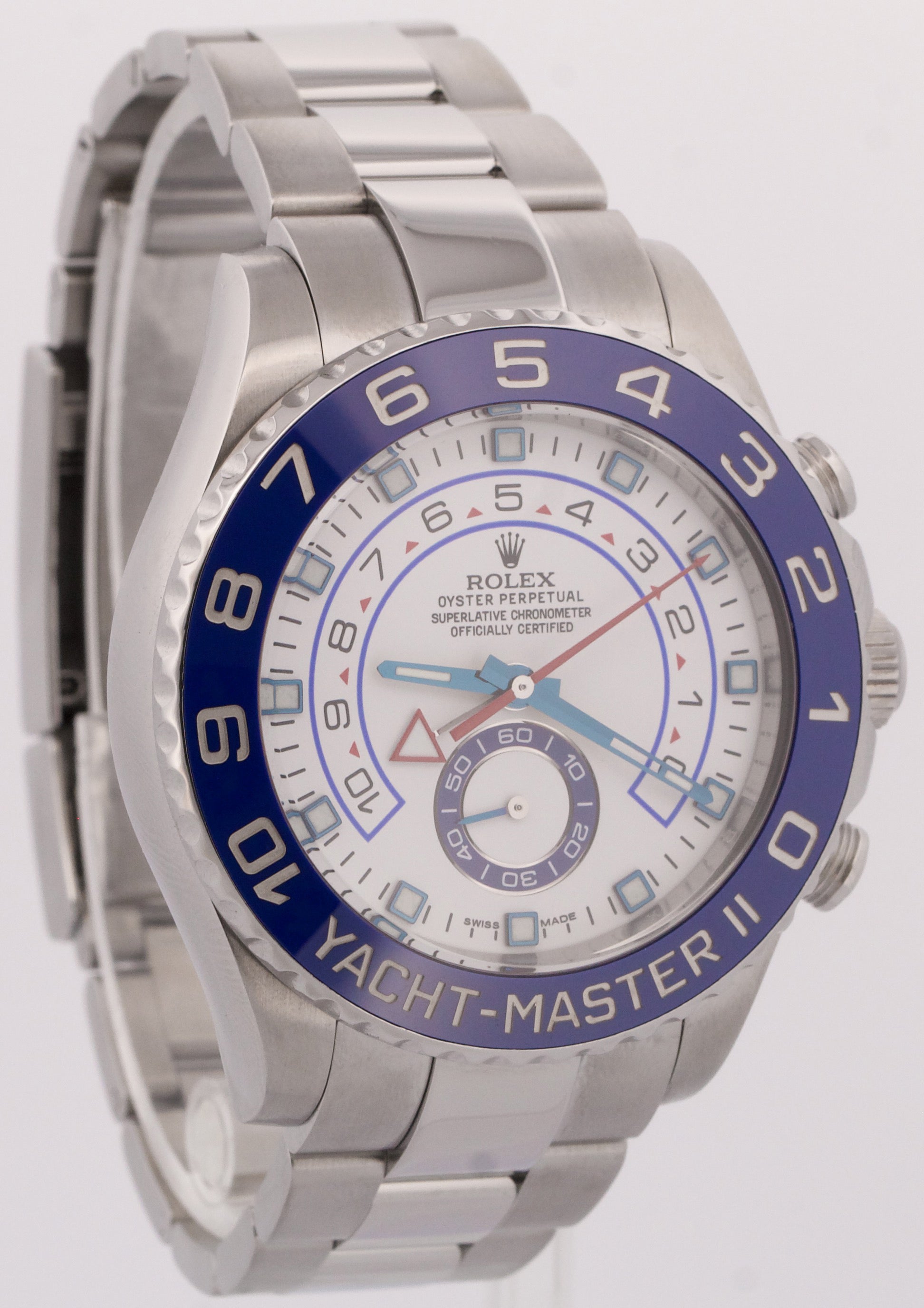 Rolex Yacht-Master II 44mm BLUE HANDS White Steel Ceramic Regatta 116680 Watch