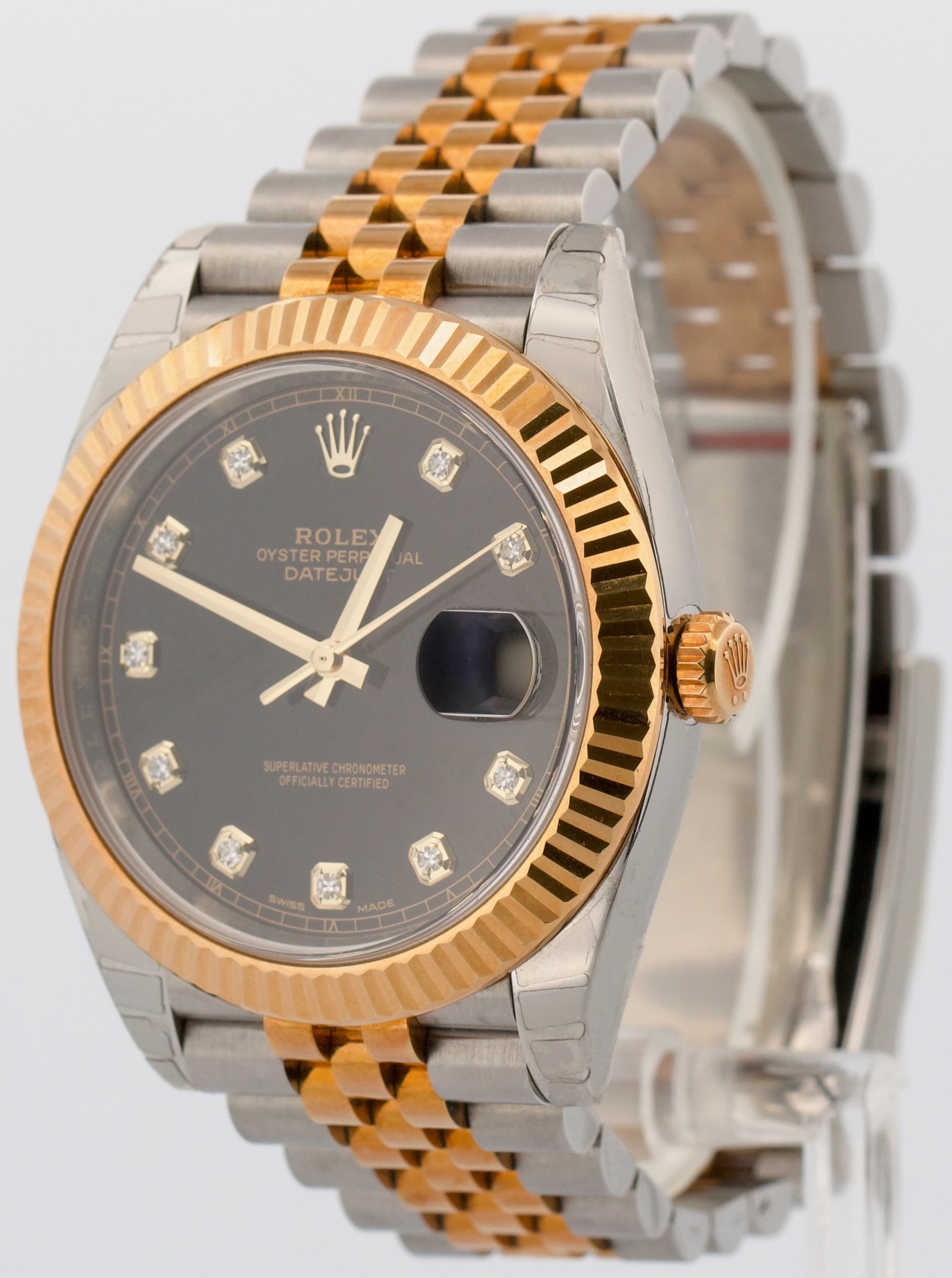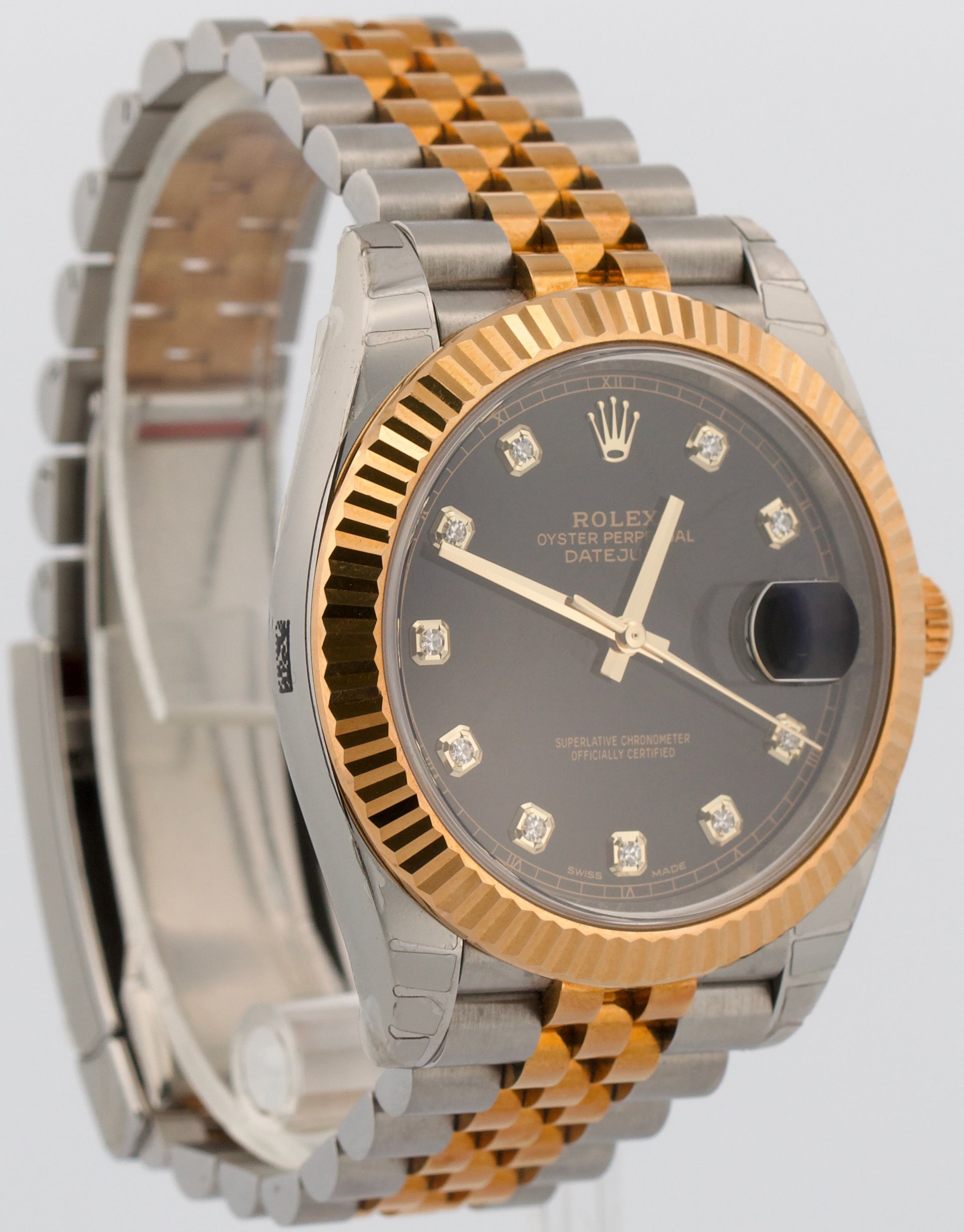 STICKERED 2017 PAPERS Rolex DateJust BLACK DIAMOND 18K JUBILEE 41mm 126333 BOX