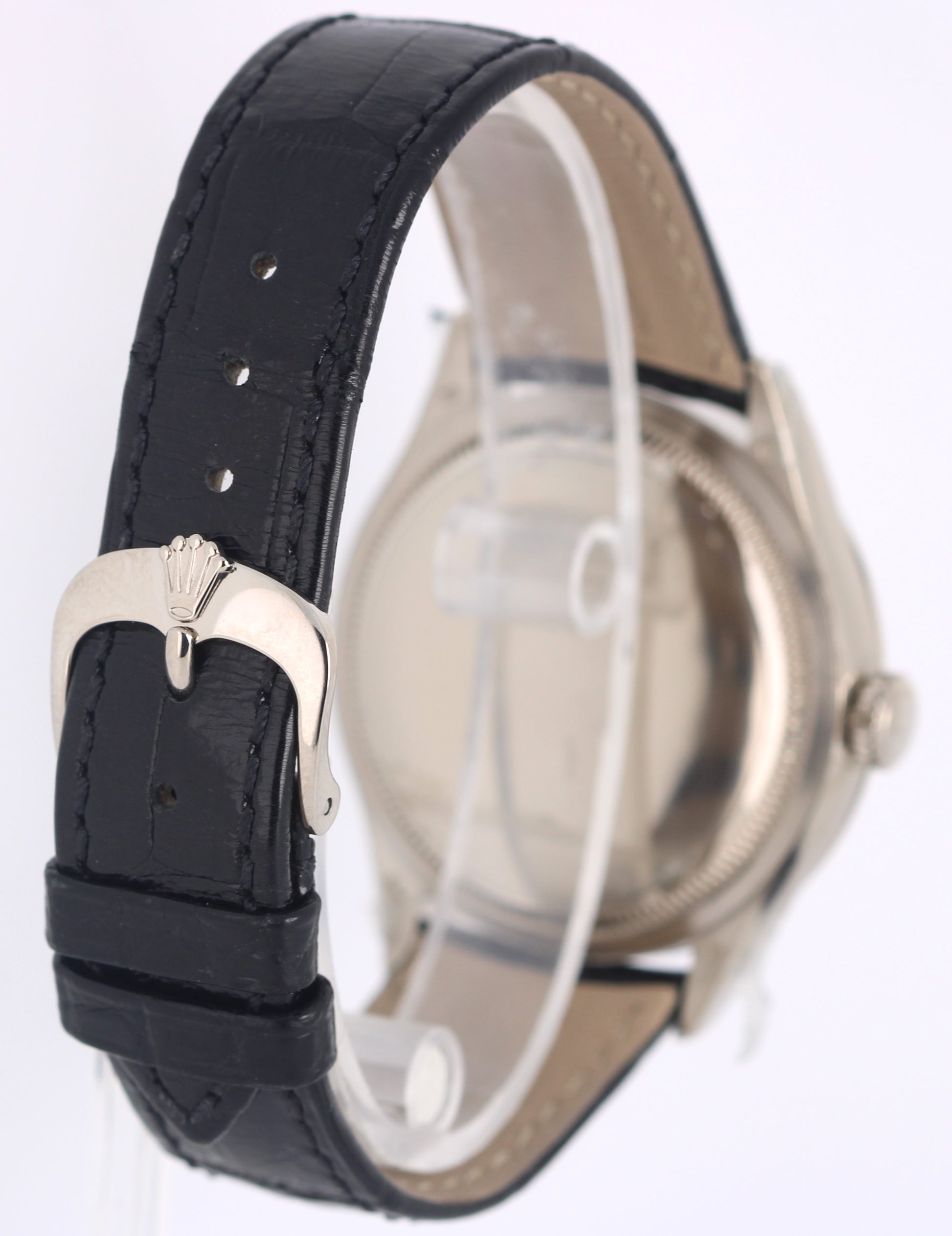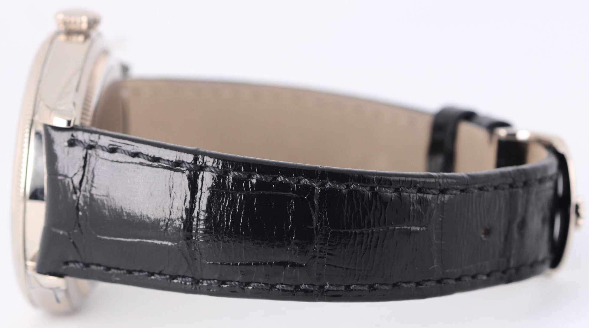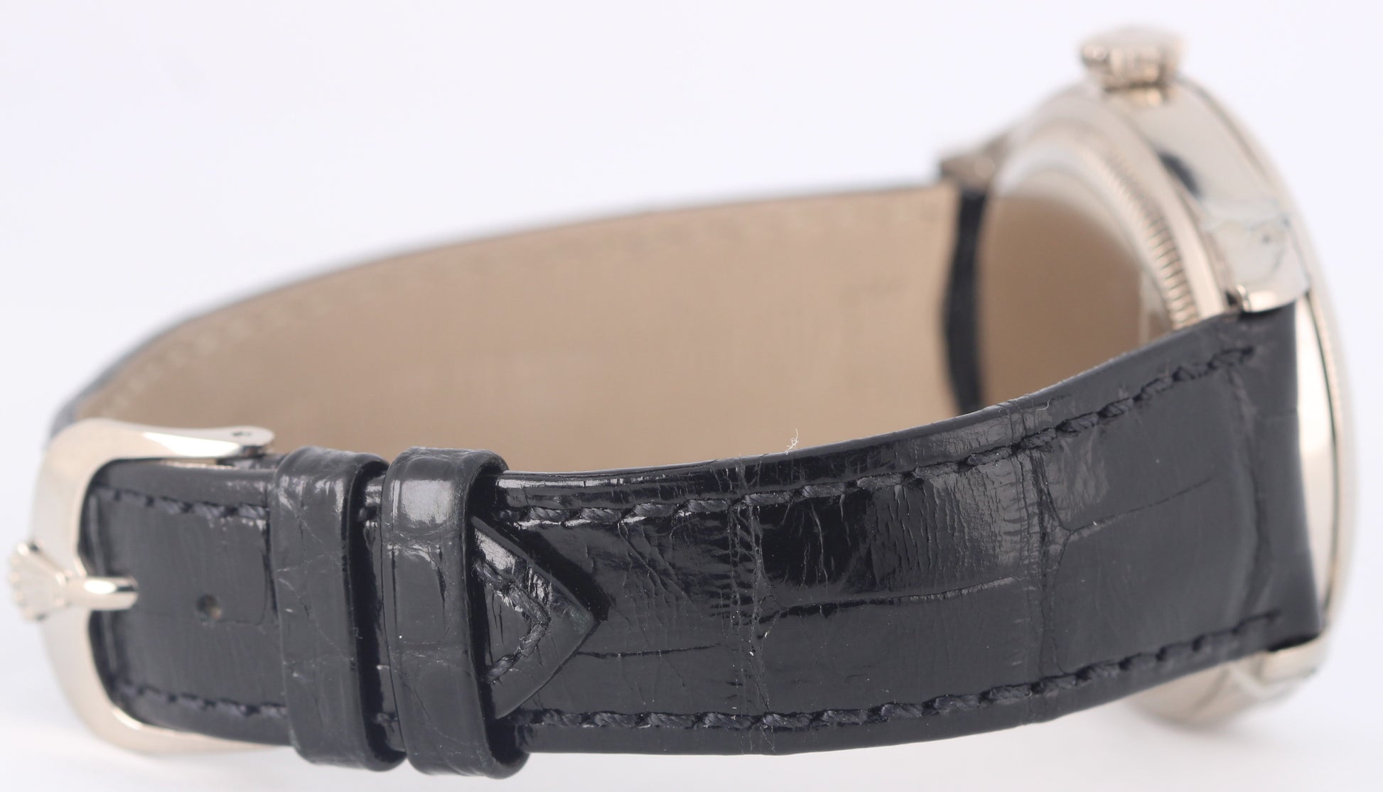 STICKERED Rolex Cellini 18K White Gold White 39mm Black Leather 50509 Watch
