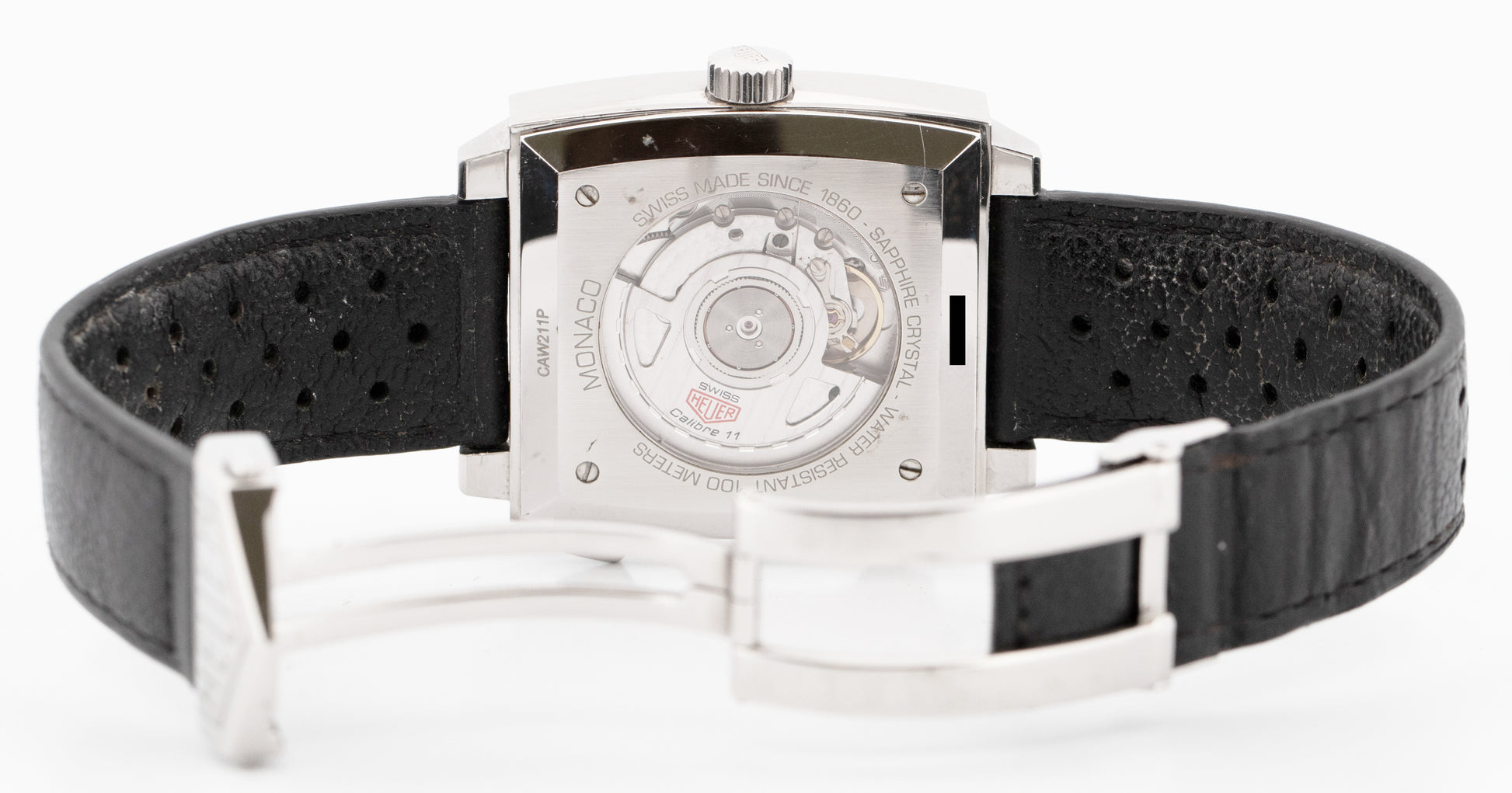 Tag Heuer Monaco CAW211P Steve McQueen Blue Leather Steel 39mm Date Watch BOX
