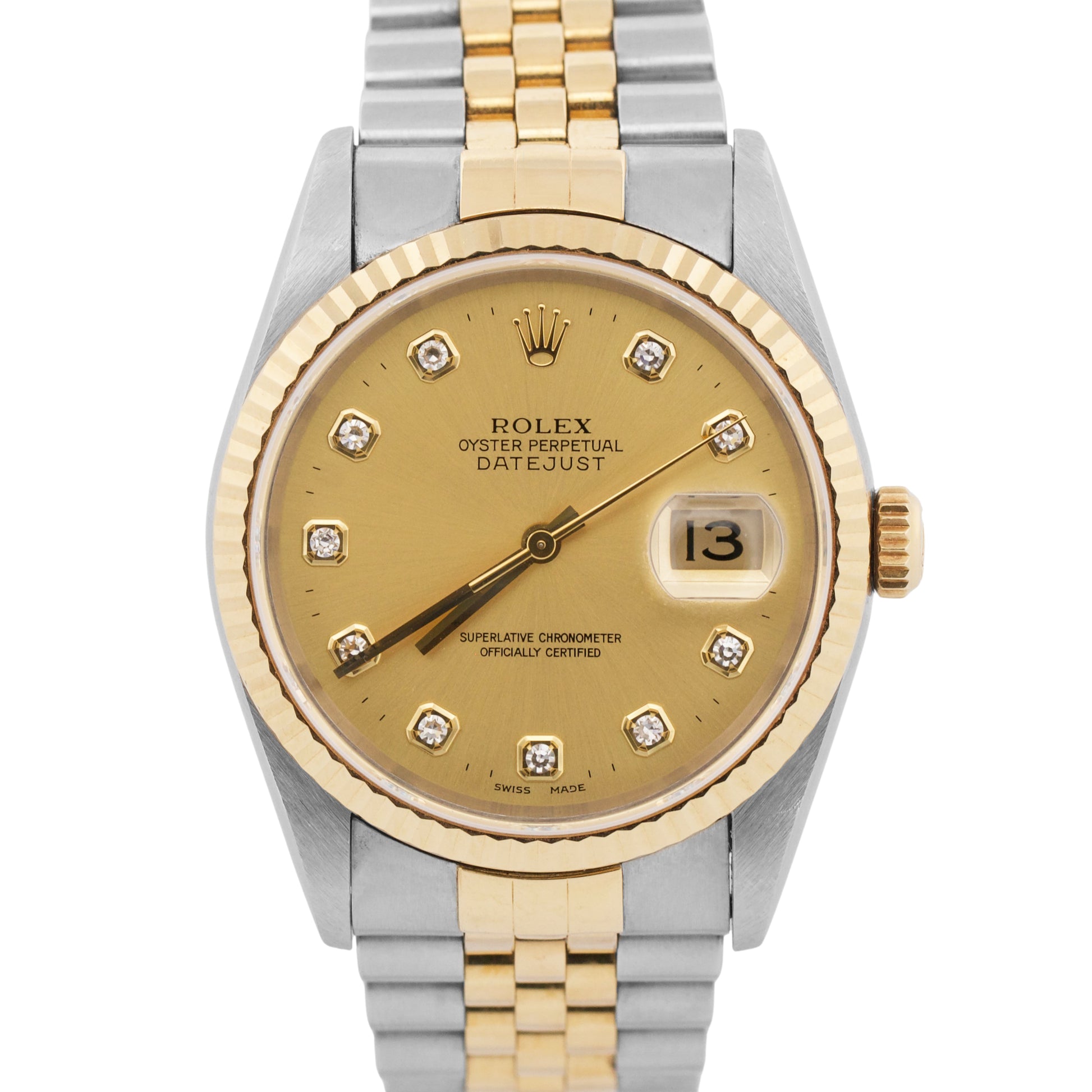 UNPOLISHED PAPERS Rolex DateJust 36mm CHAMPAGNE DIAMOND 18K JUBILEE 16233 BOX