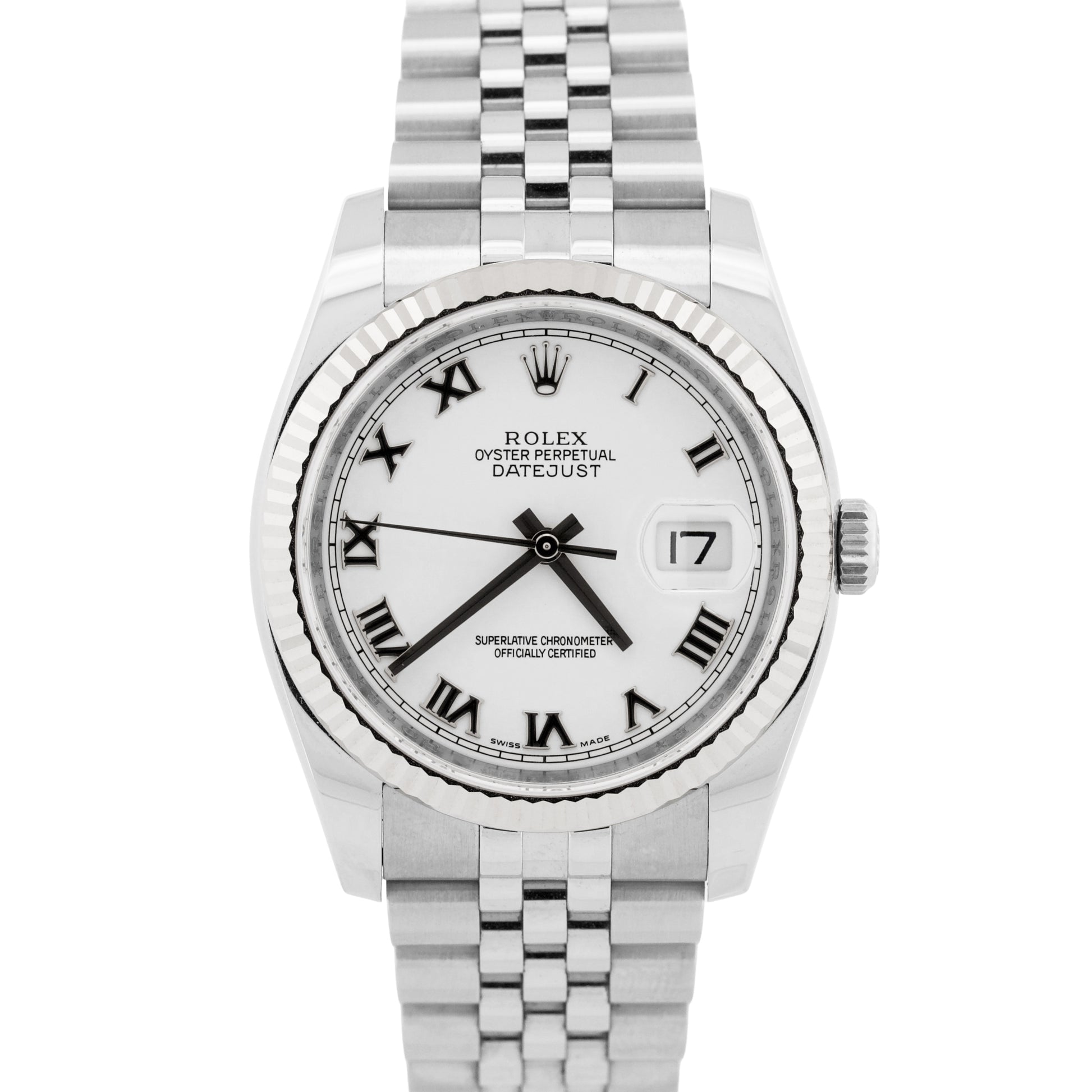 UNPOLISHED PAPERS Rolex DateJust 36mm WHITE ROMAN Steel JUBILEE 18K 116234 BOX