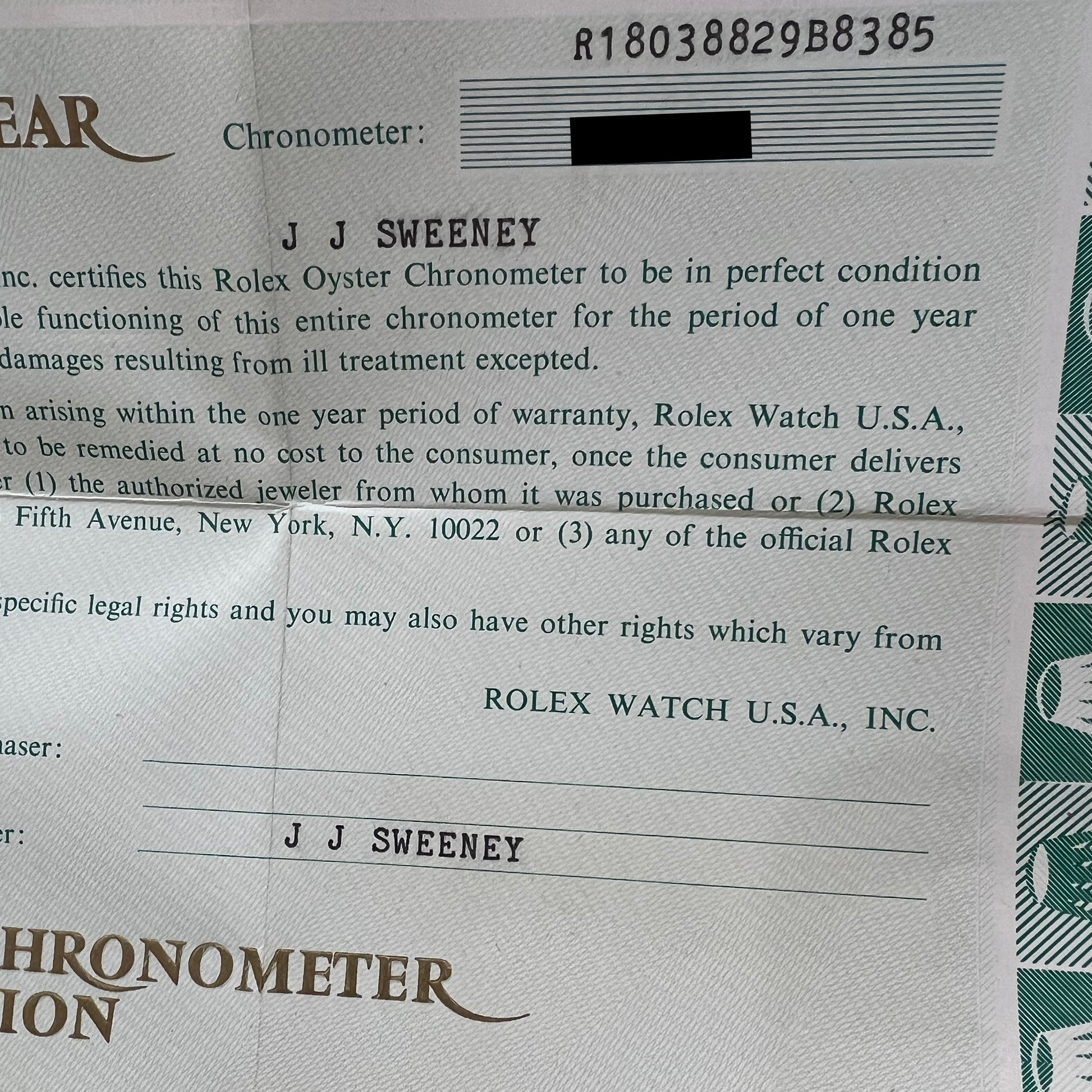 | Serial Number | 9,13*,*** (The original Rolex warranty paperwork is undated / unnamed!) |