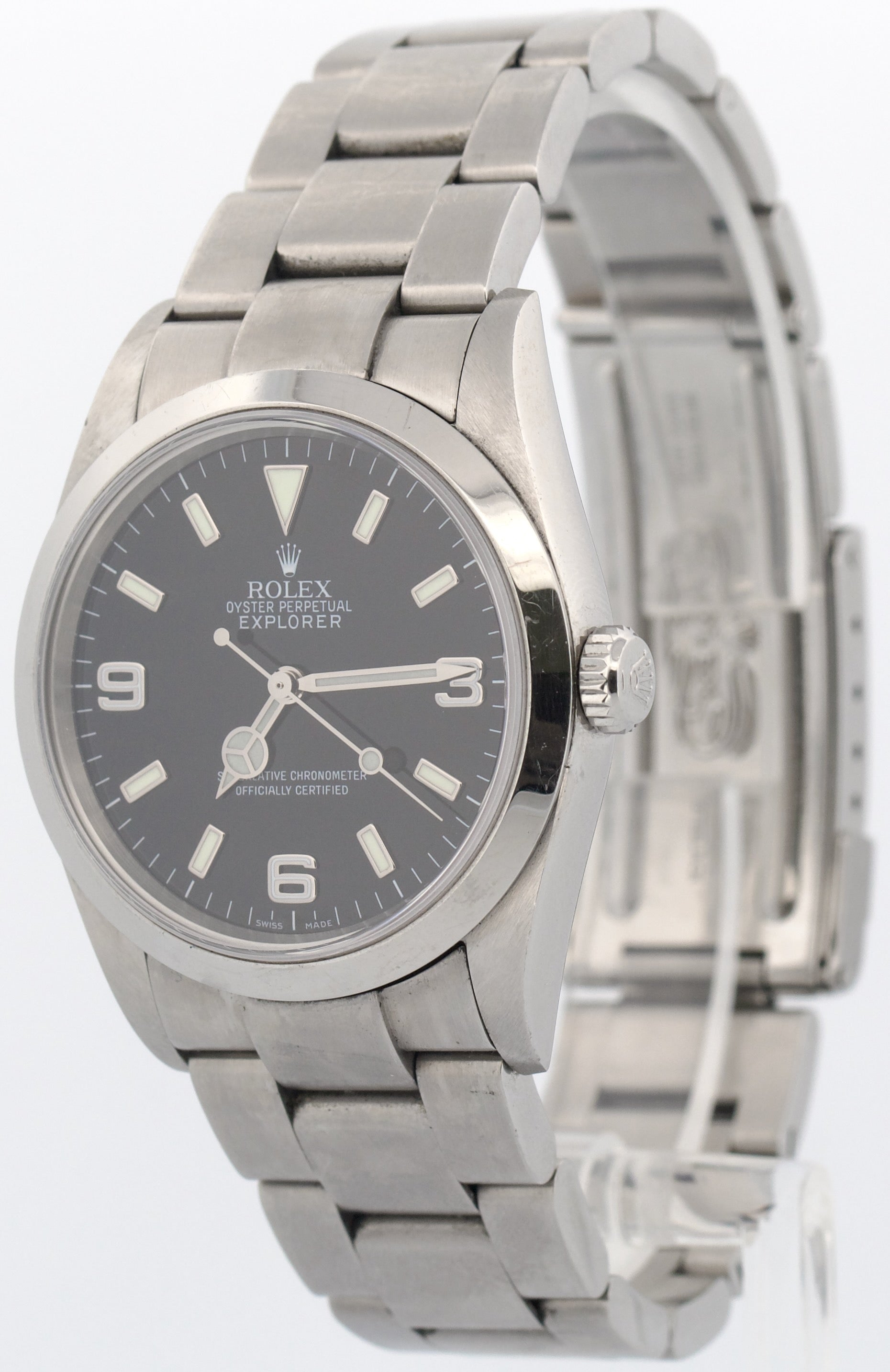 UNPOLISHED PAPERS Rolex Explorer I Black 36mm 3-6-9 Stainless MK2 114270 BOX