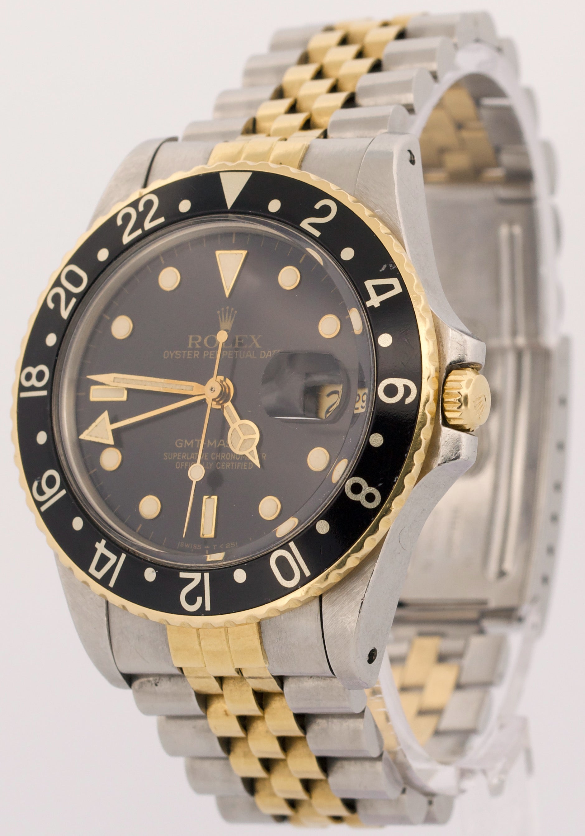 UNPOLISHED Rolex GMT-Master Black 40mm Two Tone 18K Yellow Gold JUBILEE 16753