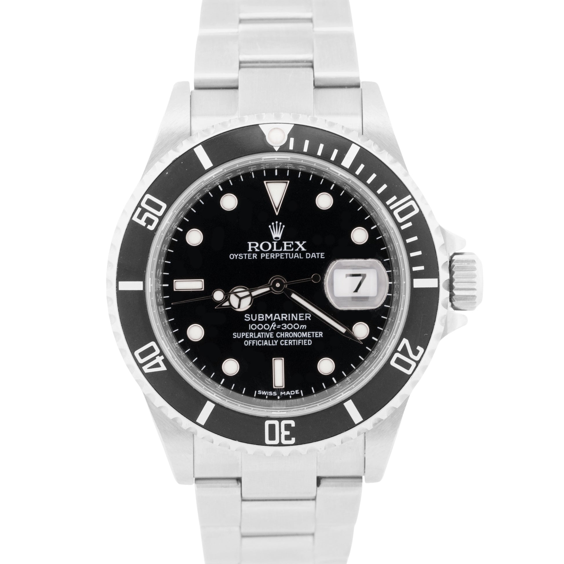 UNPOLISHED Rolex Submariner Date REHAUT Black Steel 40mm Oyster Watch 16610