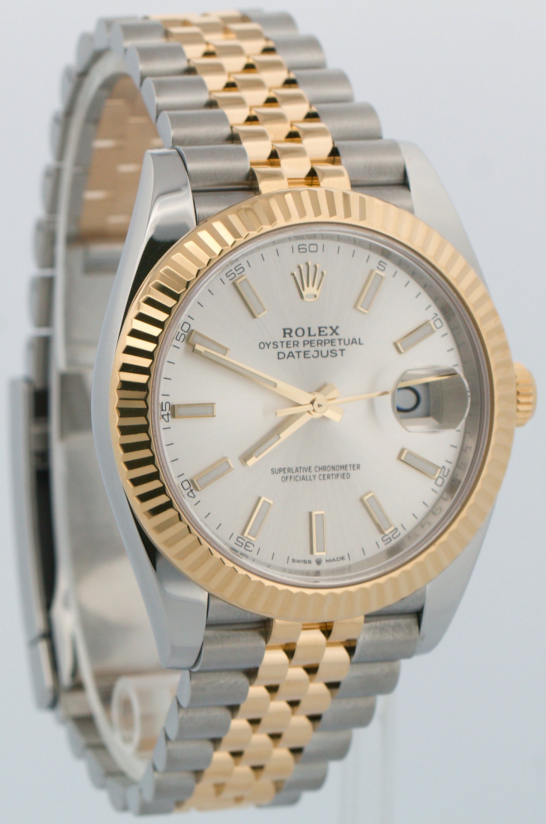 UNWORN PAPERS Rolex DateJust 41 SILVER 18K Gold JUBILEE 41mm 126333 Watch BOX