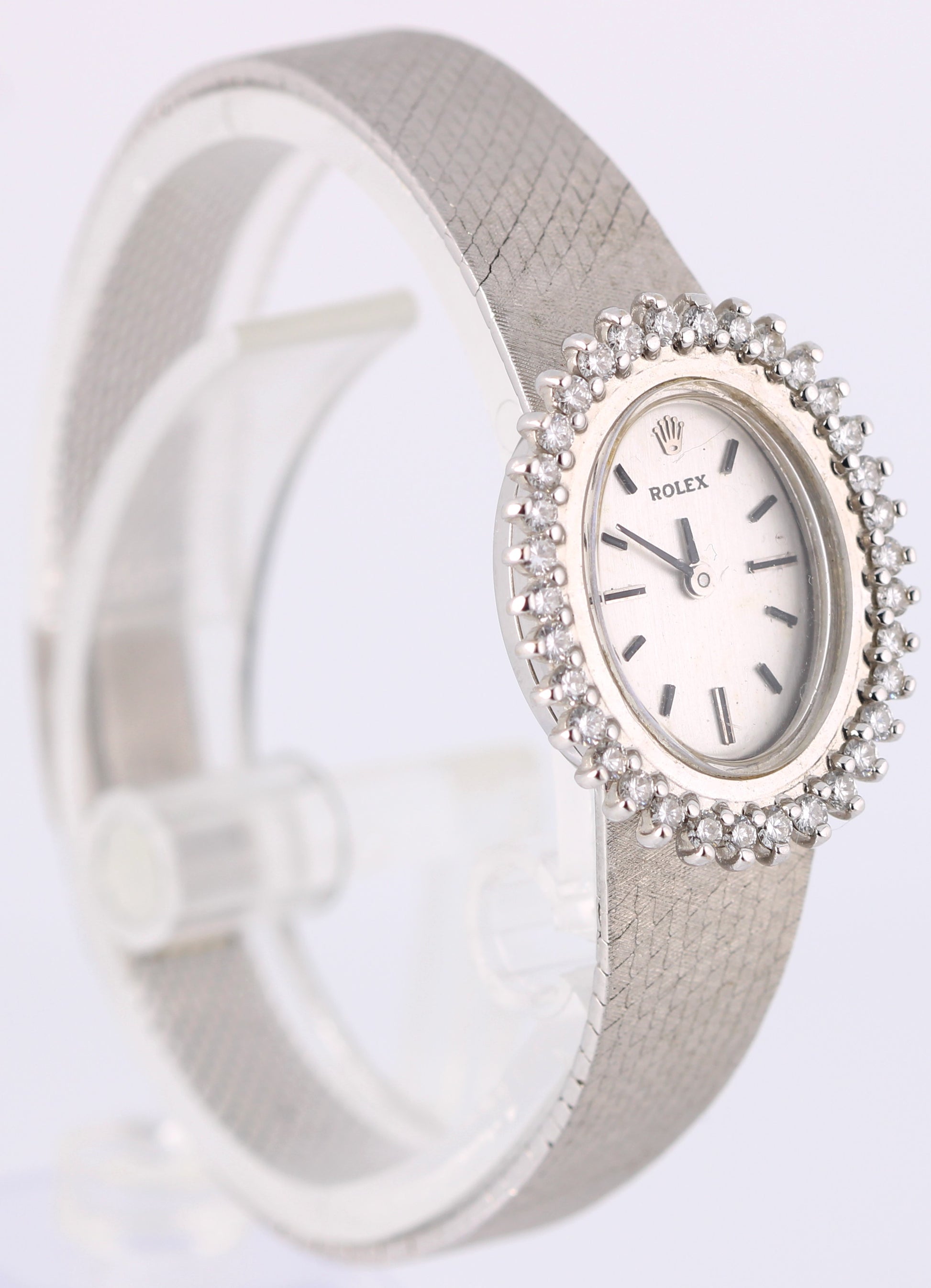VINTAGE 1971 PAPERS Rolex 14k White Gold DIAMOND Silver 21mmX26mm 8330 Watch