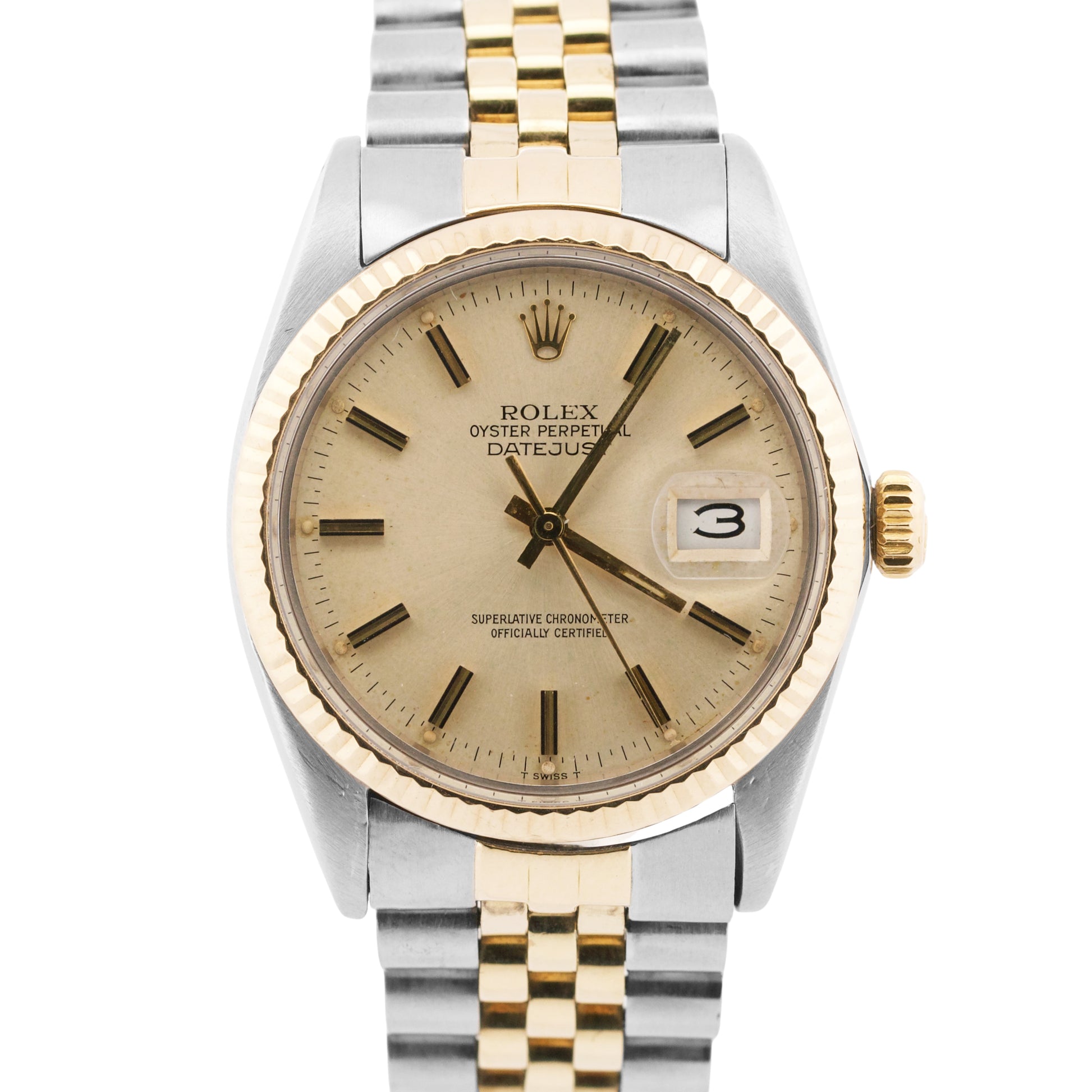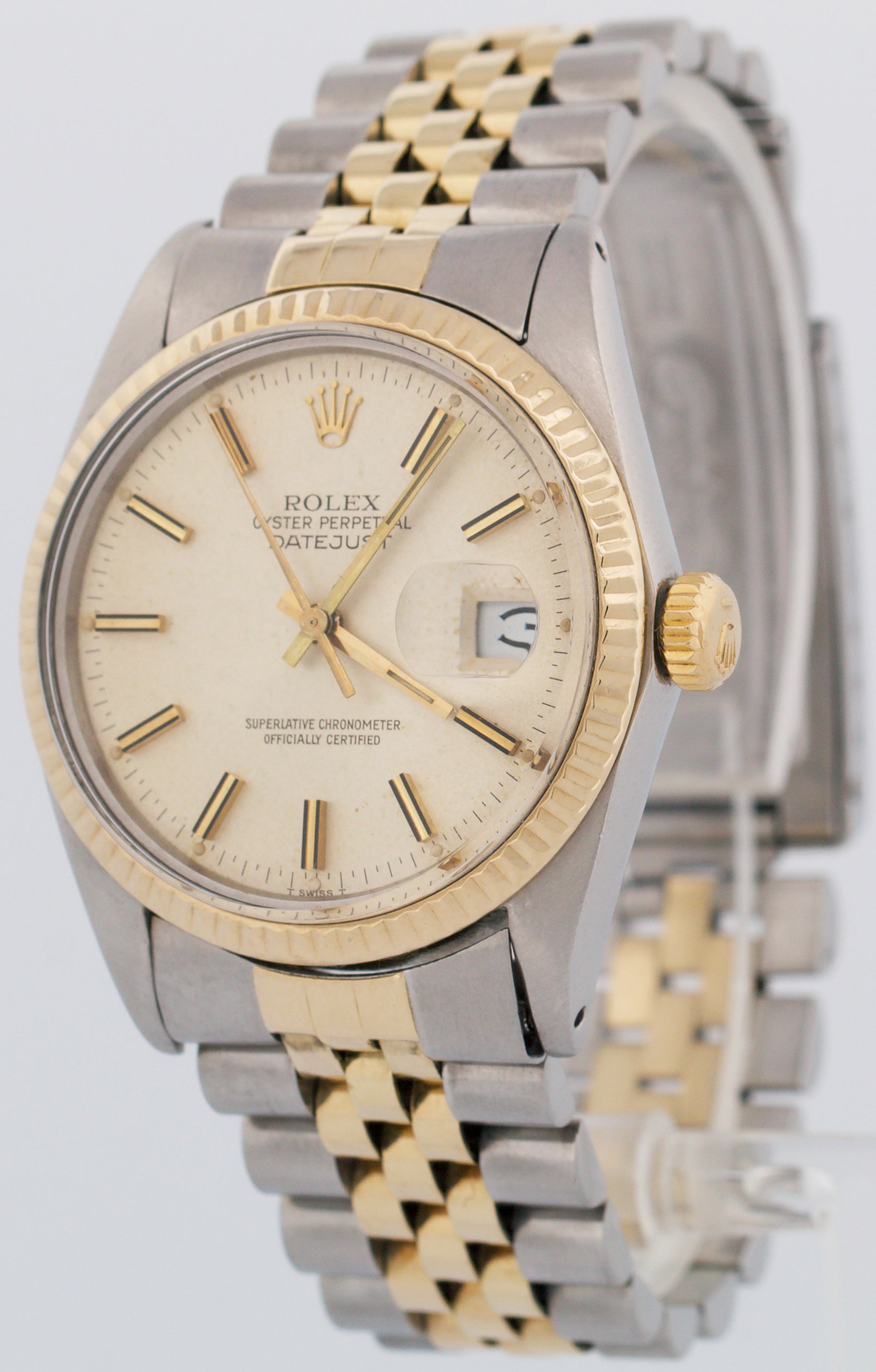 VINTAGE 1982 Rolex DateJust 36mm PATINA SILVER 18K Gold Steel JUBILEE 16013