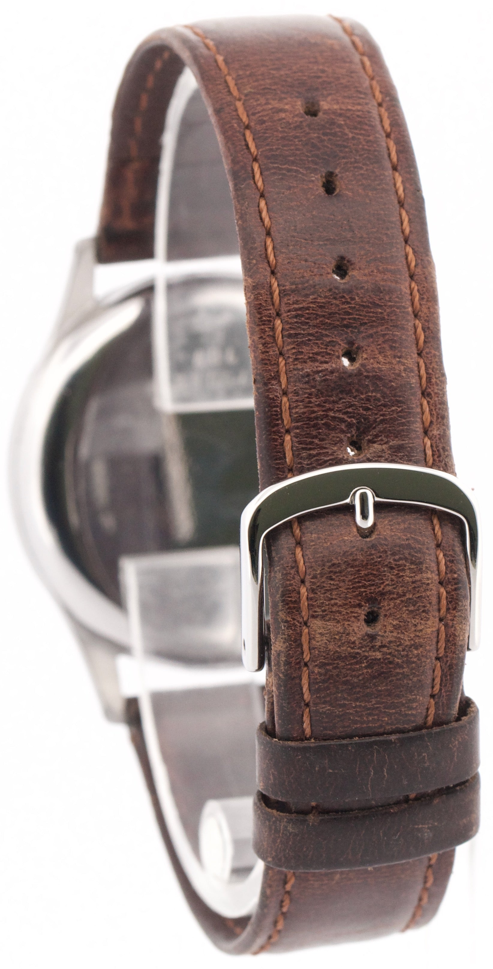 Band | Custom Brown Leather Strap and Stainless Steel Tang Buckle. |