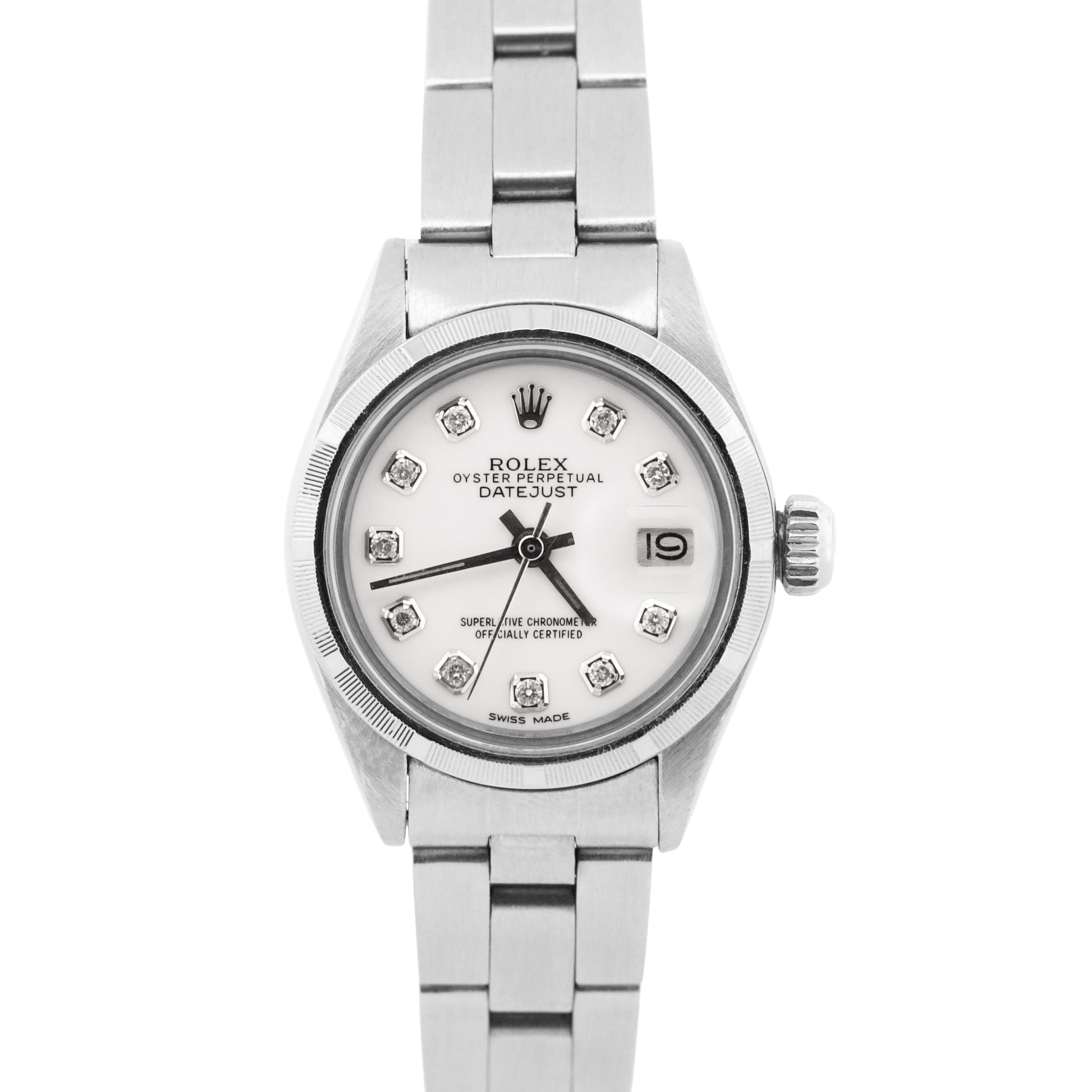 VINTAGE Ladies Rolex Oyster Perpetual Date WHITE DIAMOND 26mm Engine-Turned 6919