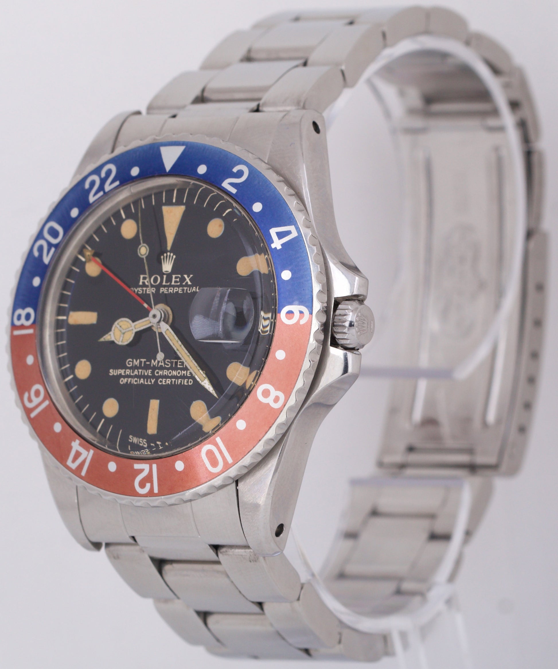 VINTAGE 1965 Rolex GMT-Master Red Blue PEPSI Stainless Steel GILT Oyster 1675
