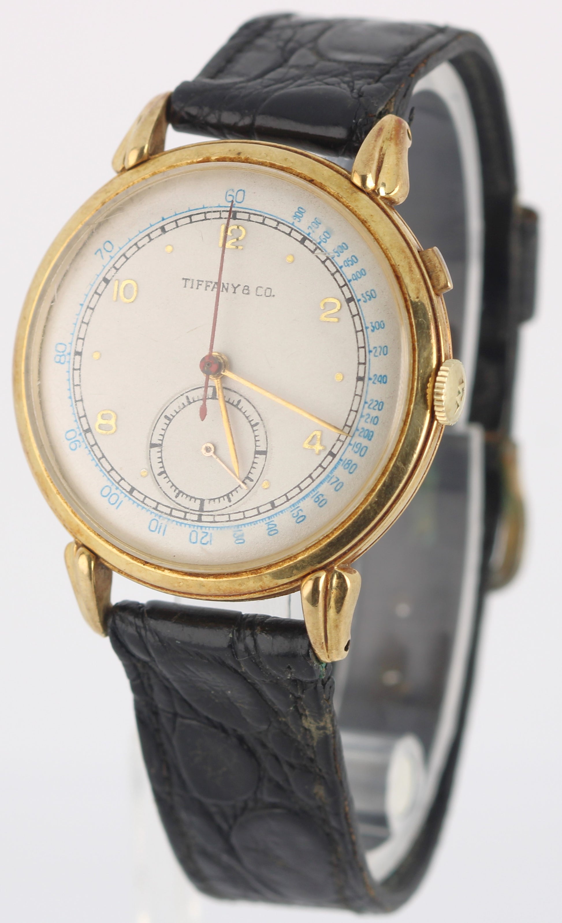 VINTAGE Tiffany & Co Chronograph 14k Yellow Gold Silver 35mm 44870 Manual Watch
