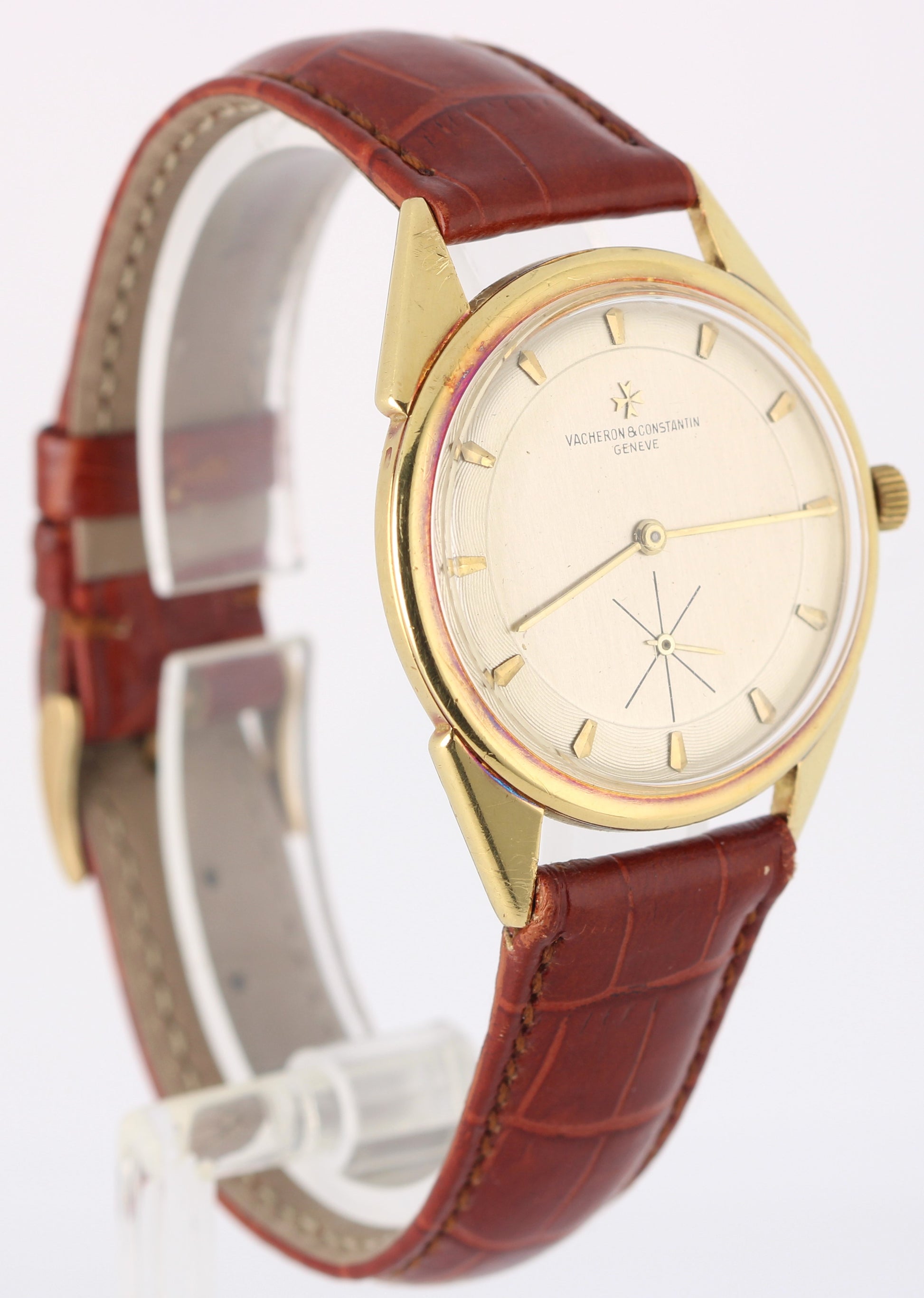 VINTAGE Vacheron Constantin 18k Yellow Gold Silver 33mm 4752 Leather Watch